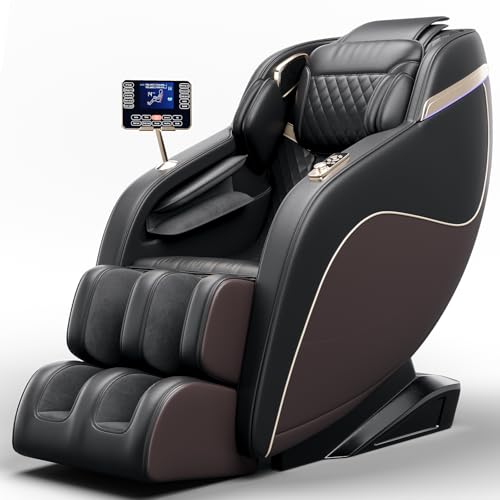 Massage Chair Full Body, Zero Gravity Massage Recliner Chairs with Hip Heat, Foot Massage and Air Massage System for Touch Screen Controller, Home Relaxation Recliners (Brown White)