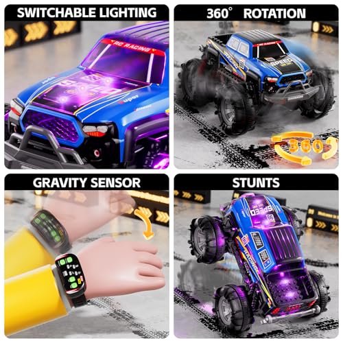 Remote Control Car for Boys 4-7, Amphibious RC Truck with Spray & Light, Remote Control Monster Truck Off-Road RC Cars for Boys Age 8-12, RC Cars for Adults Gift Toys 3-10