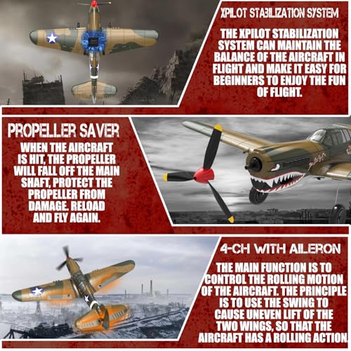 RC Plane 4-CH RC Airplane – RC Airplane Ready to Fly Upgrade P-40 Warhawk Remote Control Airplanes for Beginners Adult with Beginners with Xpilot Stabilization System