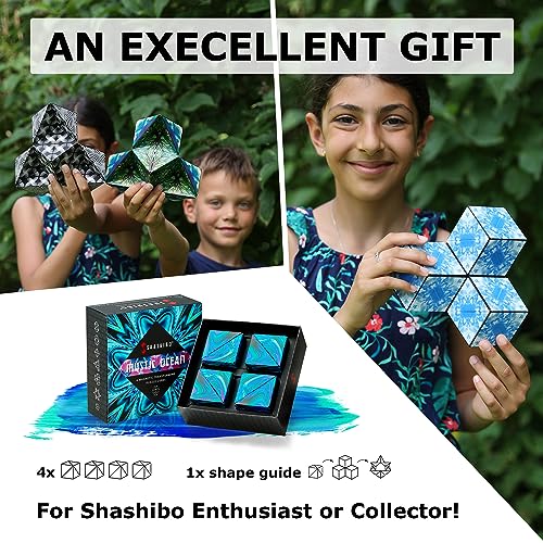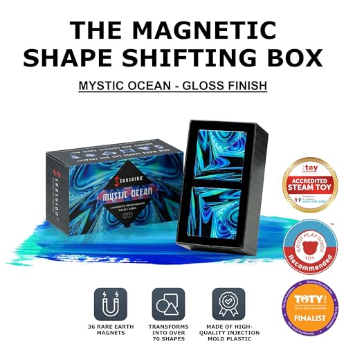 Shashibo Shape Shifting Box - STEM Magnetic Fidget Cube That Transforms Into Over 70 Shapes, Download Fun in Motion Toys Mobile App (Mystic Ocean)