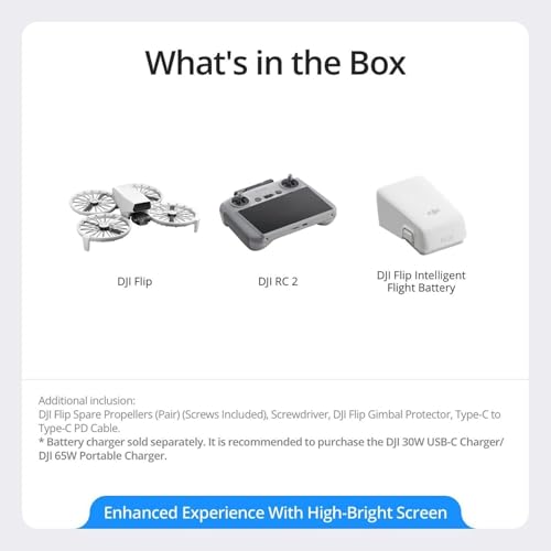 DJI Flip With RC 2 Screen Remote Controller, Follow Me Drone With 4K UHD Camera for Adults, Under 249 g, 3-Axis Gimbal Stabilization, 44000ft/13km Video Transmission, Palm Takeoff, 31-Min Flight Time