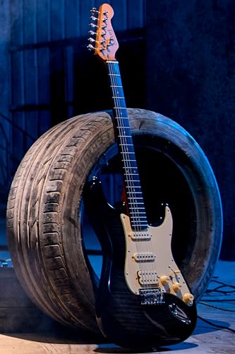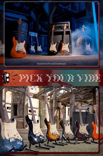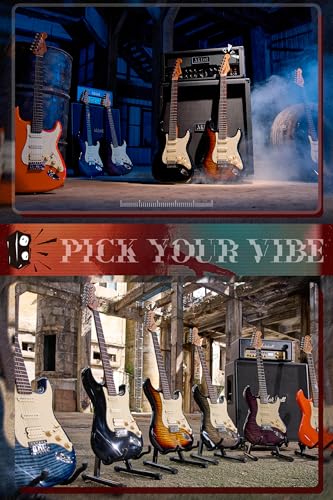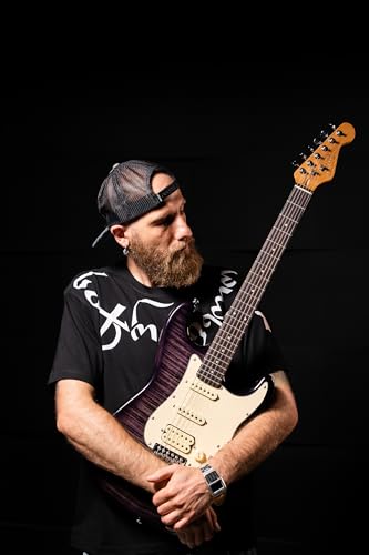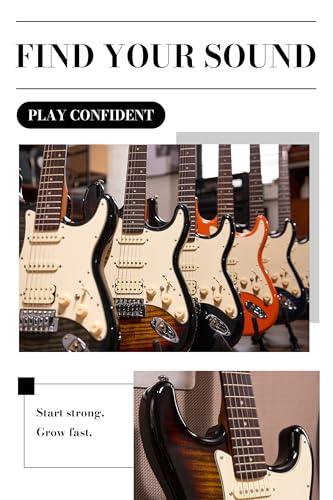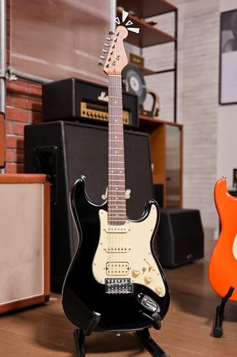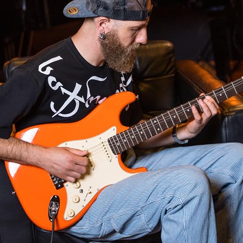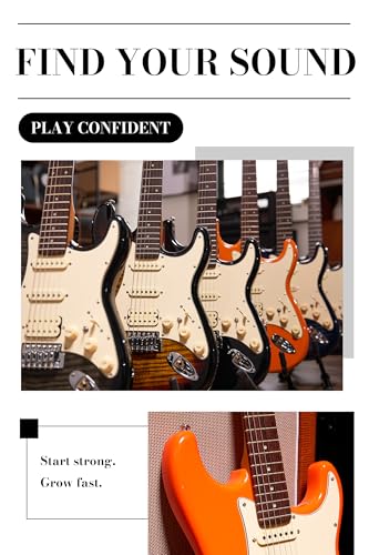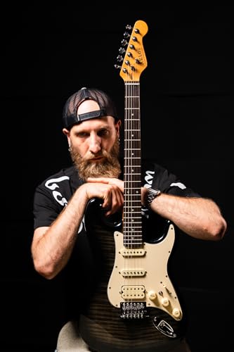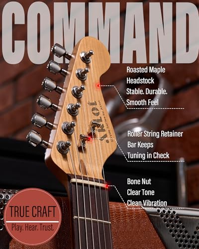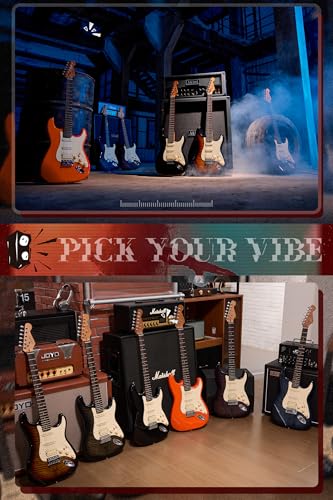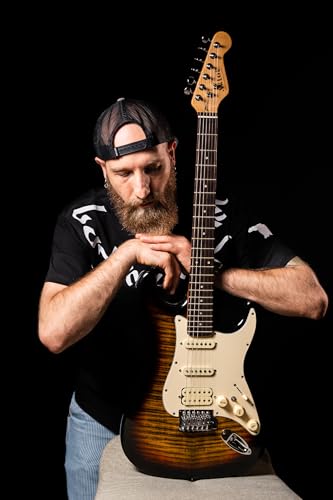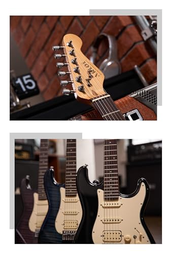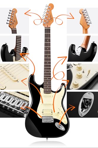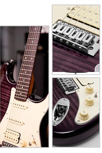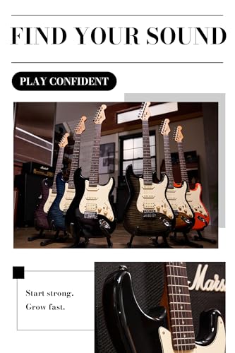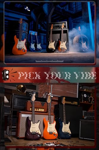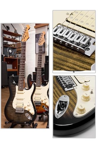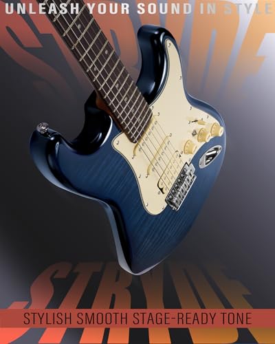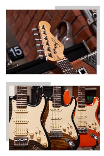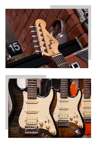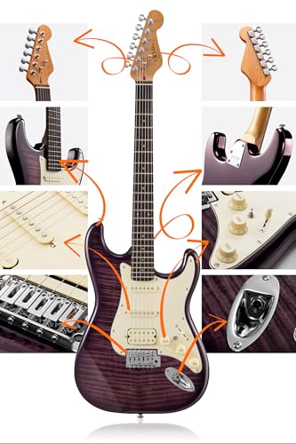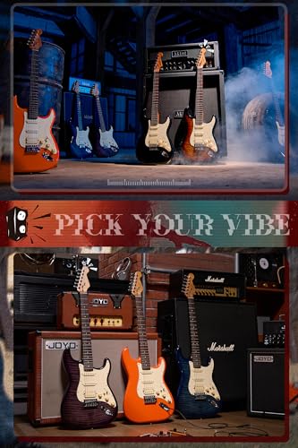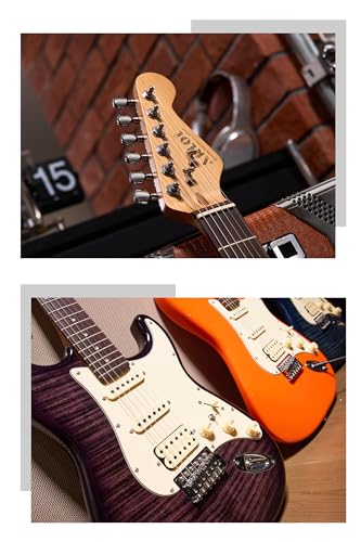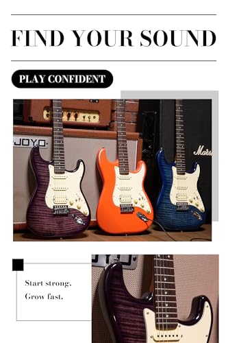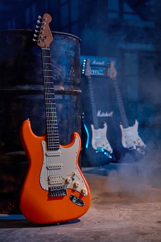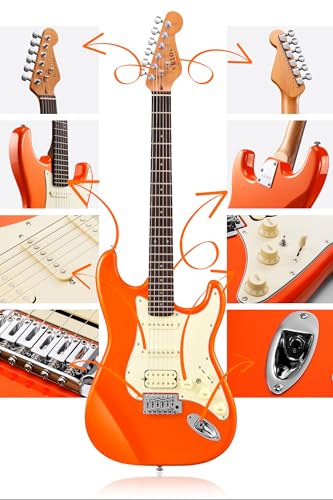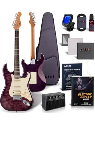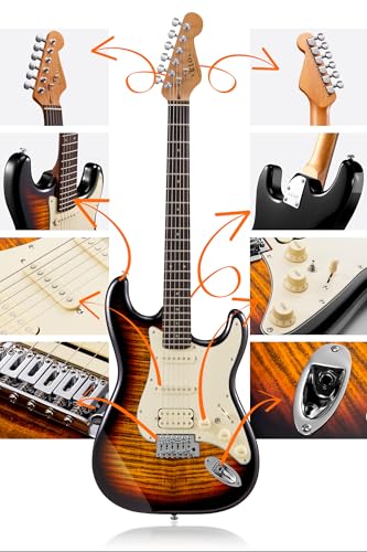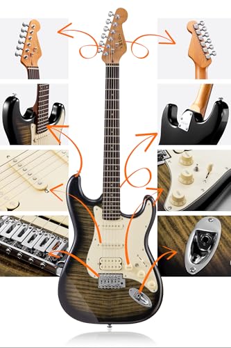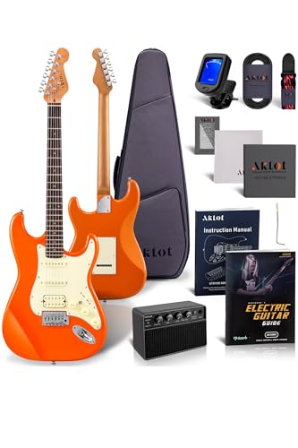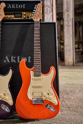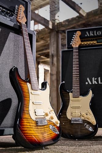 AKLOT Stryde Electric Guitar with Coil-Split: Roasted Maple Neck, Flame Maple Graphic Top, HSS Ceramic Pickups, Beginner Guitar Kit with 10W Amp, Gig Bag, Strap, Picks, Lesson Book, Blaze Orange