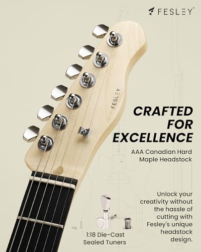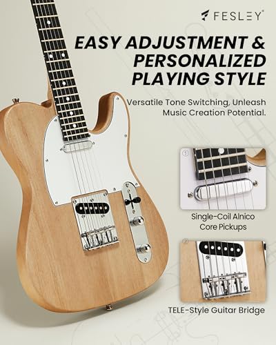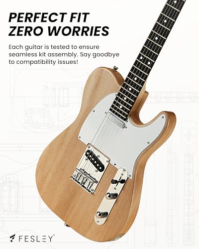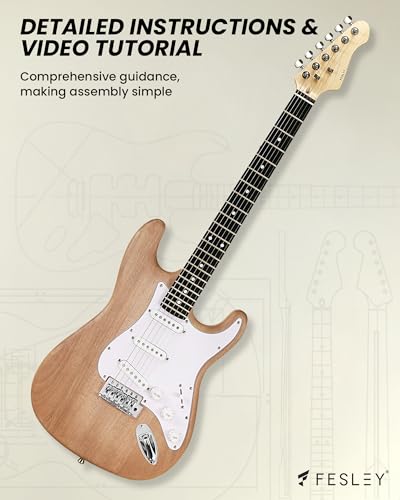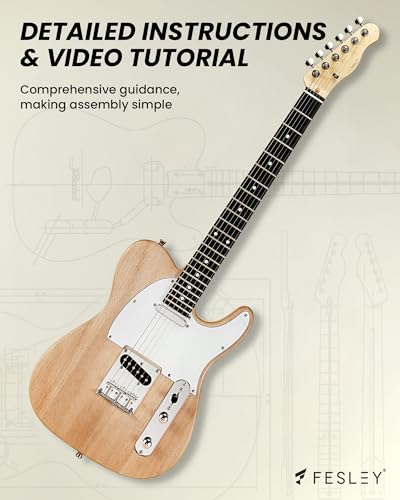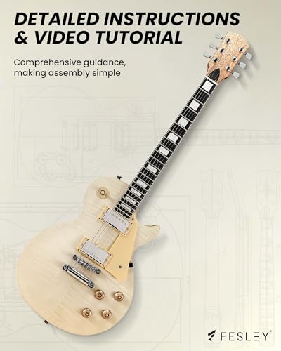Fesley DIY LP Style Electric Guitar with Mahogany Wood Body/Neck, 6 String, Techwood Fretboard, H-H Pickups, Flamed Maple Veneer Top, Build Your Own Guitar Kit - Natural