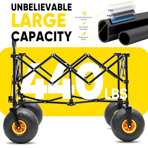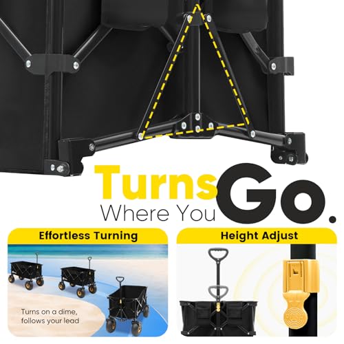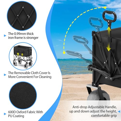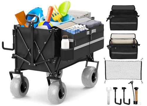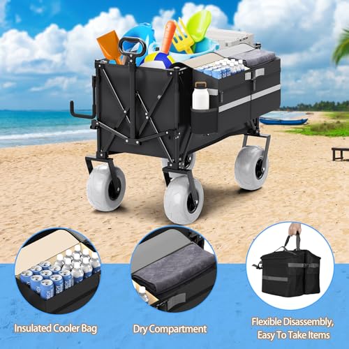 Beach Wagon with Big Wheels for Sand,Heavy Duty Collapsible Wagon with All-Terrain 9" Pneumatic Tires and Detachable Cooler, Utility Beach Cart for Garden Sports Camping Activities