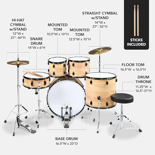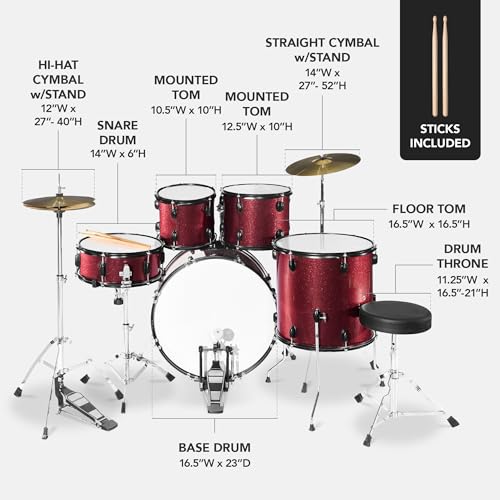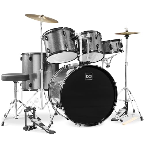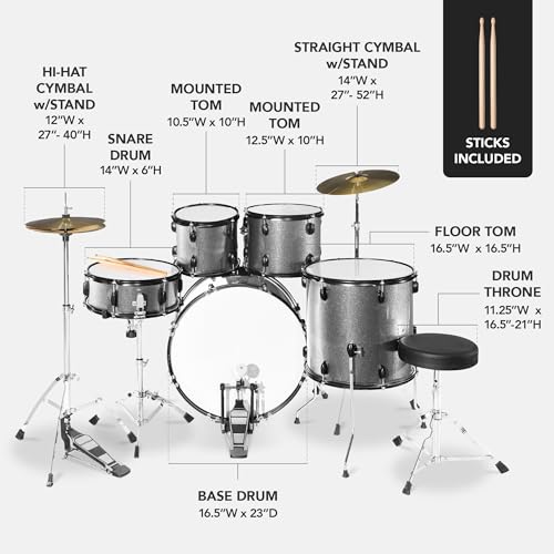 Best Choice Products 5-Piece Full Size Complete Adult Drum Set w/Cymbal Stands, Stool, Drum Pedal, Sticks, Floor Tom - Dark Blue Sparkle
