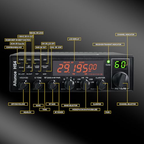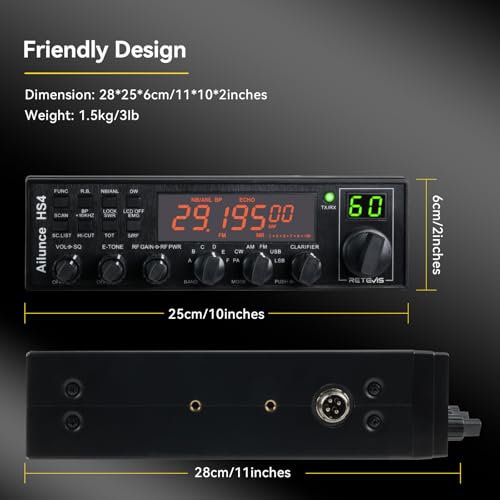 Retevis Ailunce HS4 10 Meter Radio, High Power SSB Ham Radio Base Station, CW/SSB/AM/FM/PA Mode, Noise Reduction, Dual Watch, SWR Protection, Amateur Mobile Radio Transceiver for Emergency Response