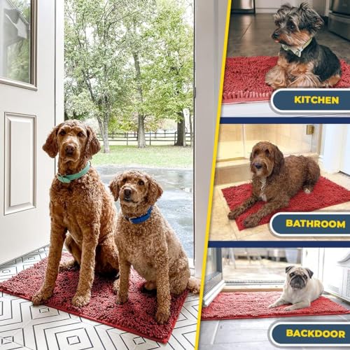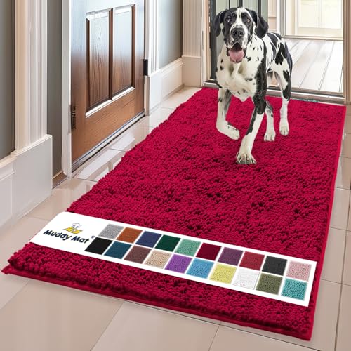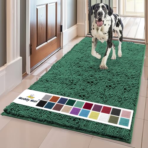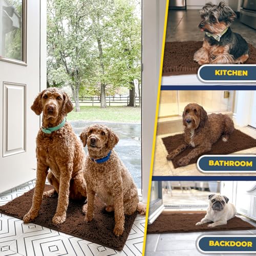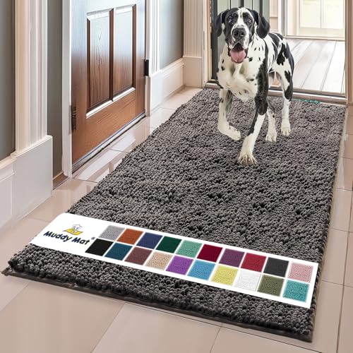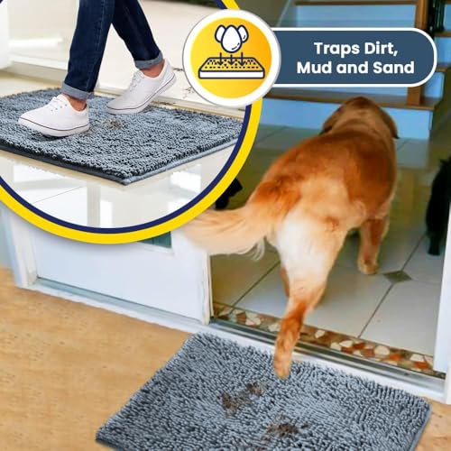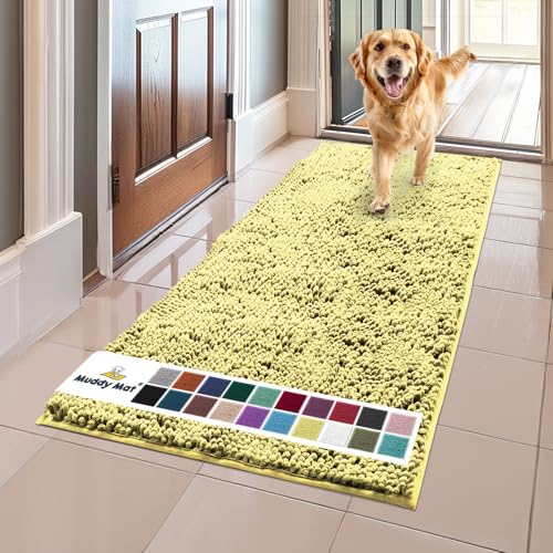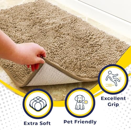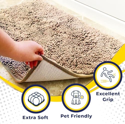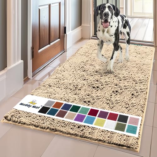 Muddy Mat® Shown on TV – Super Absorbent Microfiber Dog Door Mat for Muddy Paws, Non-Slip Washable Pet Rug, Quick Dry Chenille Entryway Carpet, Machine Washable Indoor Outdoor mat, Beige 30"x19"