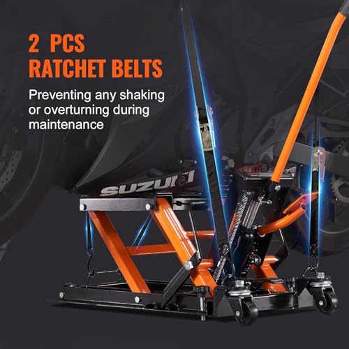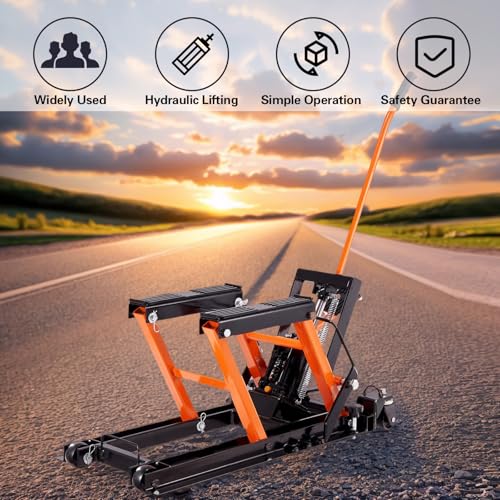 Steel Hydraulic Motorcycle Jack Stand, 1500 LBS ATV Scissor Lift Jack, 4.7"-15" Scissor Portable Lift Jack Stand with 4 Wheels, Foot-Operated Hoist Stand for Motorcycle ATV UTV Powersports