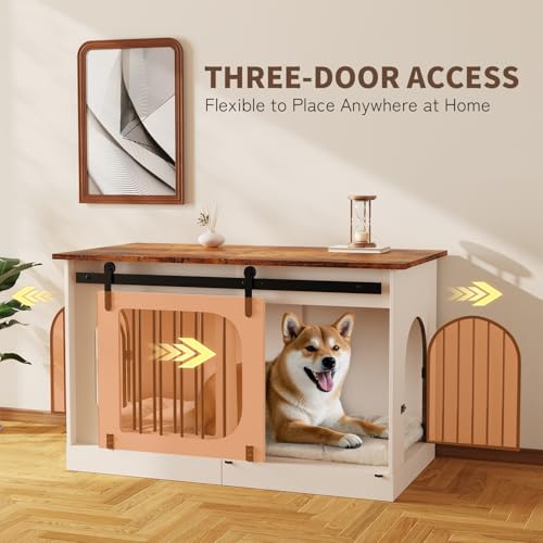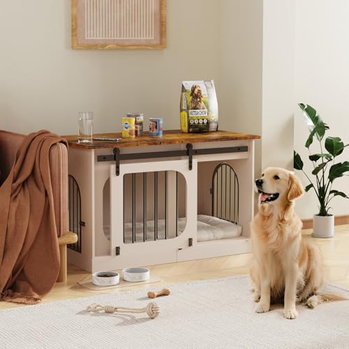 XL Dog Kennel Furniture,39.4 Inch Farmhouse Crate Furniture with Cushion Decorative White Dog Kennel Indoor Thick Wooden Pet House End Table Modern Cage Furniture for Small/Medium/Large Dog