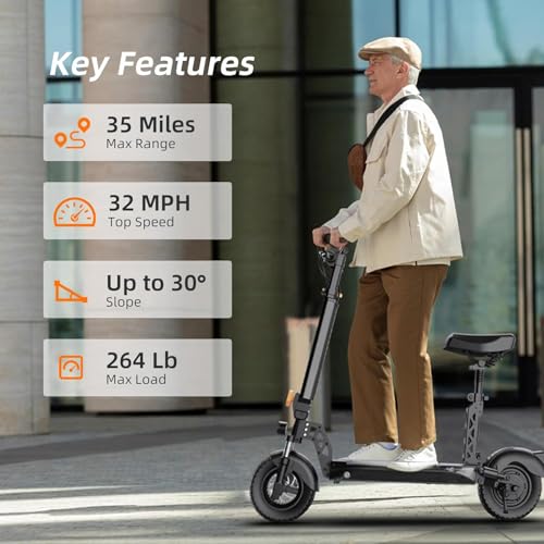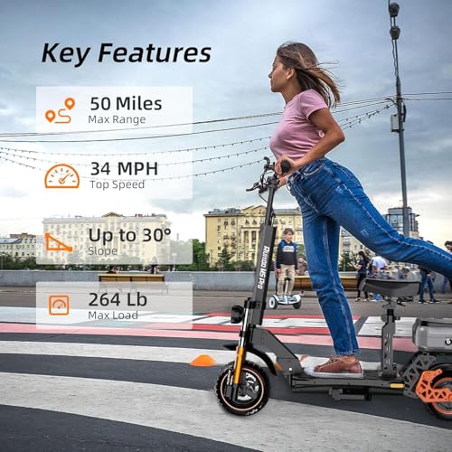 Electric Scooter for Adults, 30MPH Top Speed, 35 Miles Range, 800W Motor, 10" Off-Road Tires, Foldable E-Scooter with Seat, Commuter Electric Scooter with Seat for Adults Commuter Outdoor