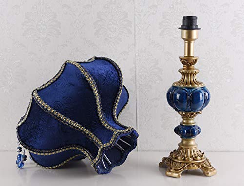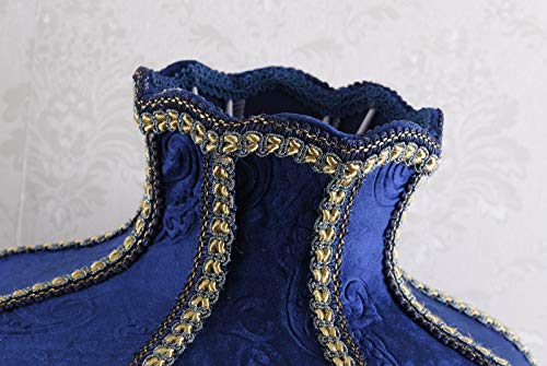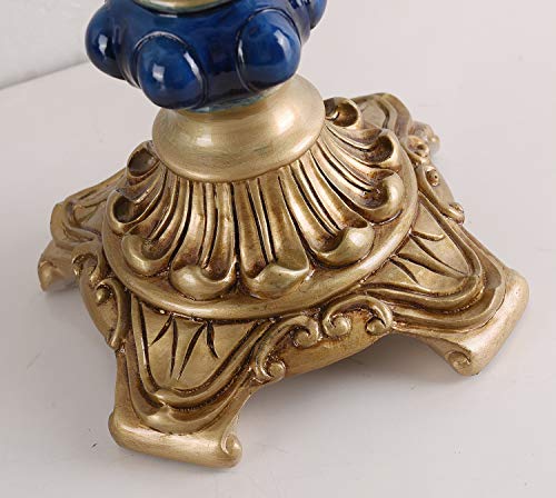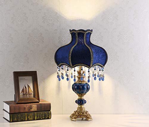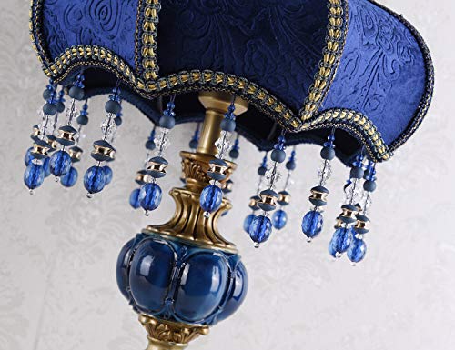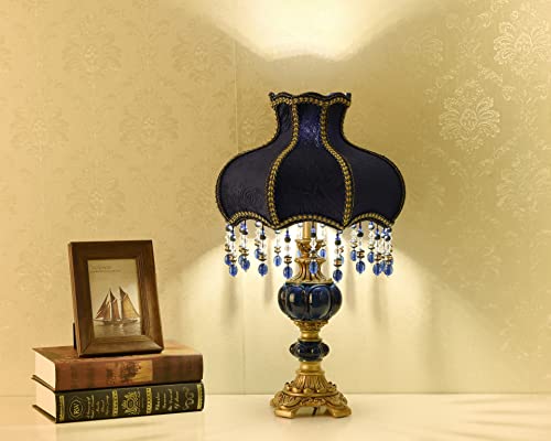 Victorian Style Table Lamp Blue Fabric Lampshade Hand-Made Antique Varnished Resin Lampbody Small Lamp for Living Room Bedroom,13 in W, 21.6 in H (Q2)