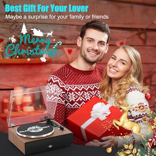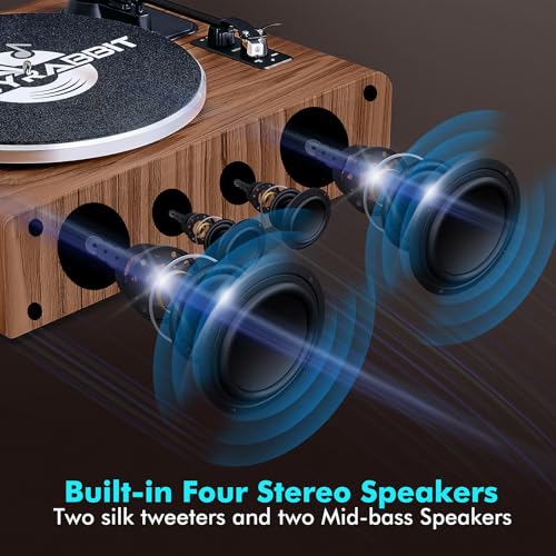 Vinyl Record Player with Speakers,High Fidelity Turntables for Vinyl Records with Magnetic Cartridge AT-3600L,Bluetooth Playback Built-in Phono Preamp,Belt Drive 2-Speed