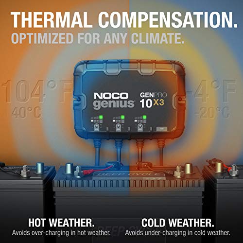 NOCO Genius GENPRO10X3: 3-Bank, 30A Onboard Battery Charger - 10A Per Bank, 12V Waterproof Marine Charger with Overcharge Protection & Temperature Compensation – for Lead-Acid & Lithium Batteries