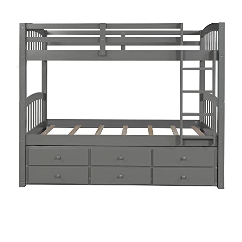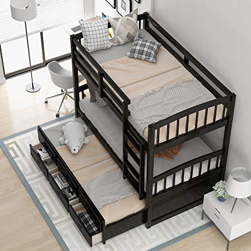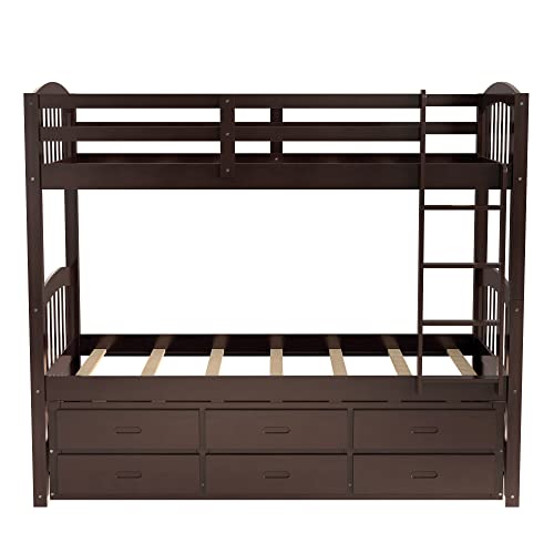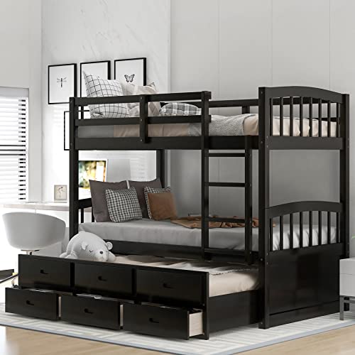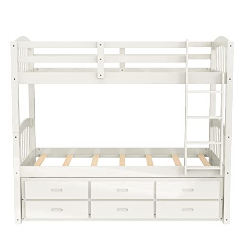 Harper & Bright Designs Twin Over Twin Bunk Bed with Storage Drawers, Solid Wood Bunk Bed Frame with Trundle, for Kids, Teens, Adults (White)