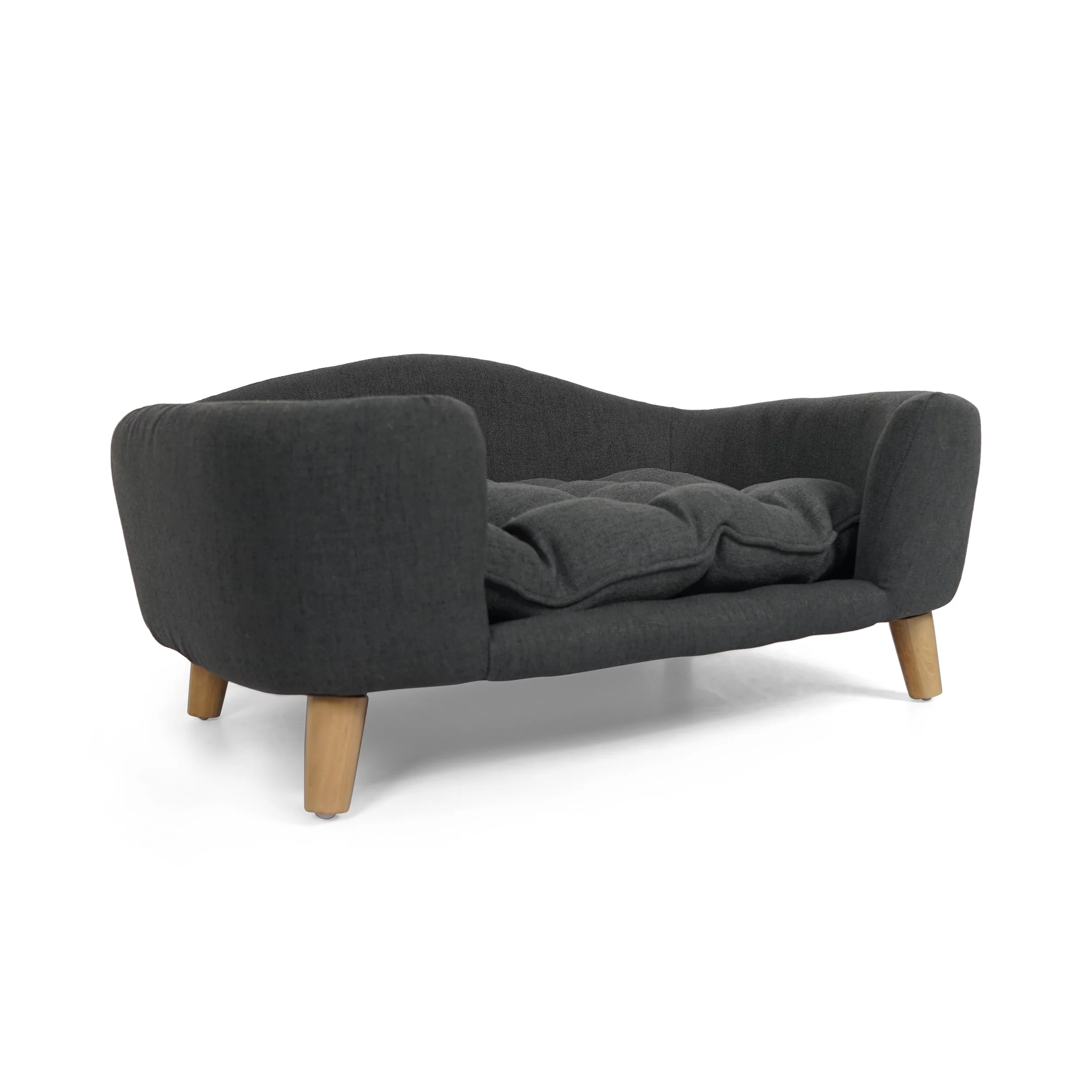 Noble House Jeffery Mid Century Small Plush Pet Bed, Dark Gray and Natural