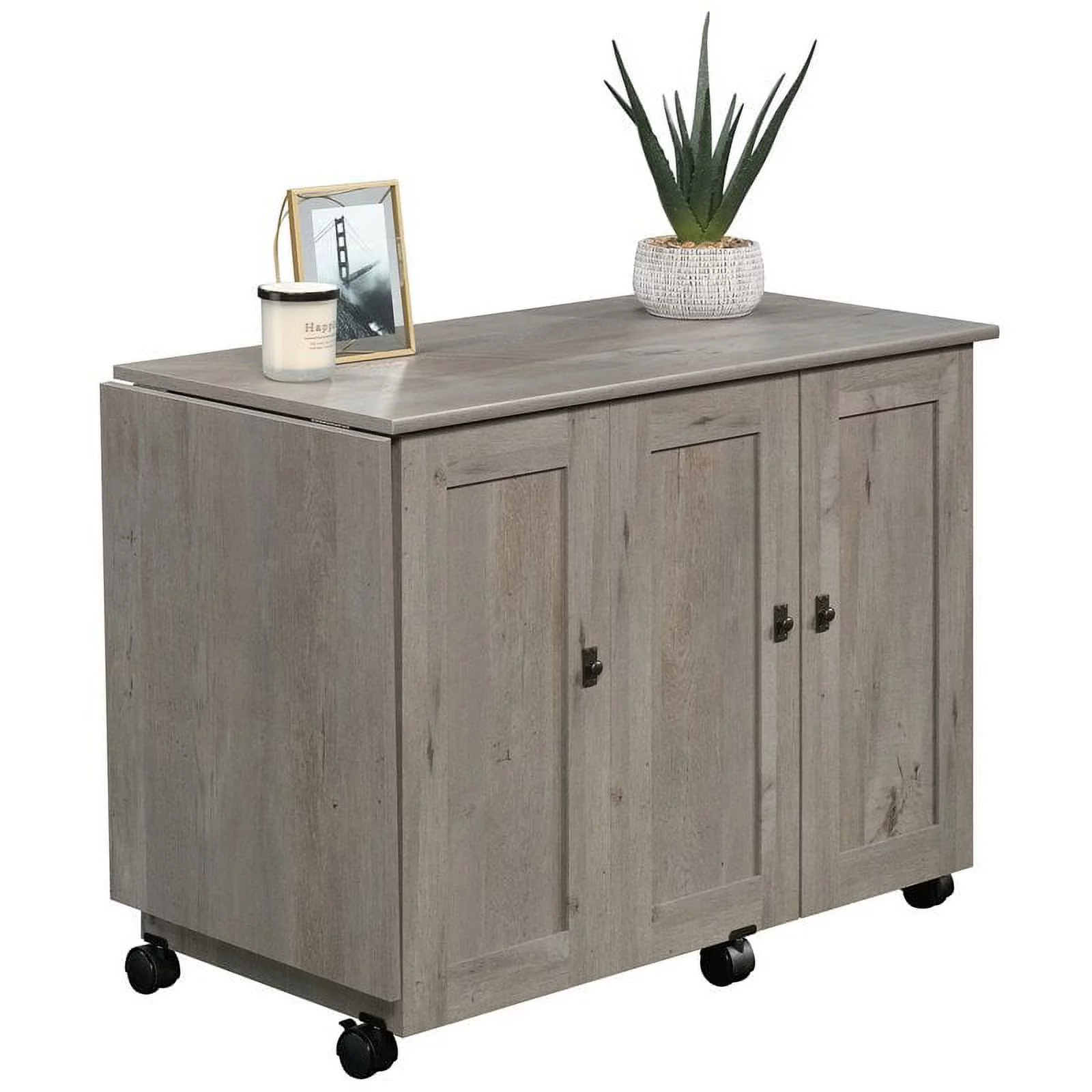 Pemberly Row Contemporary Engineered Wood Sewing Craft Table in Oak