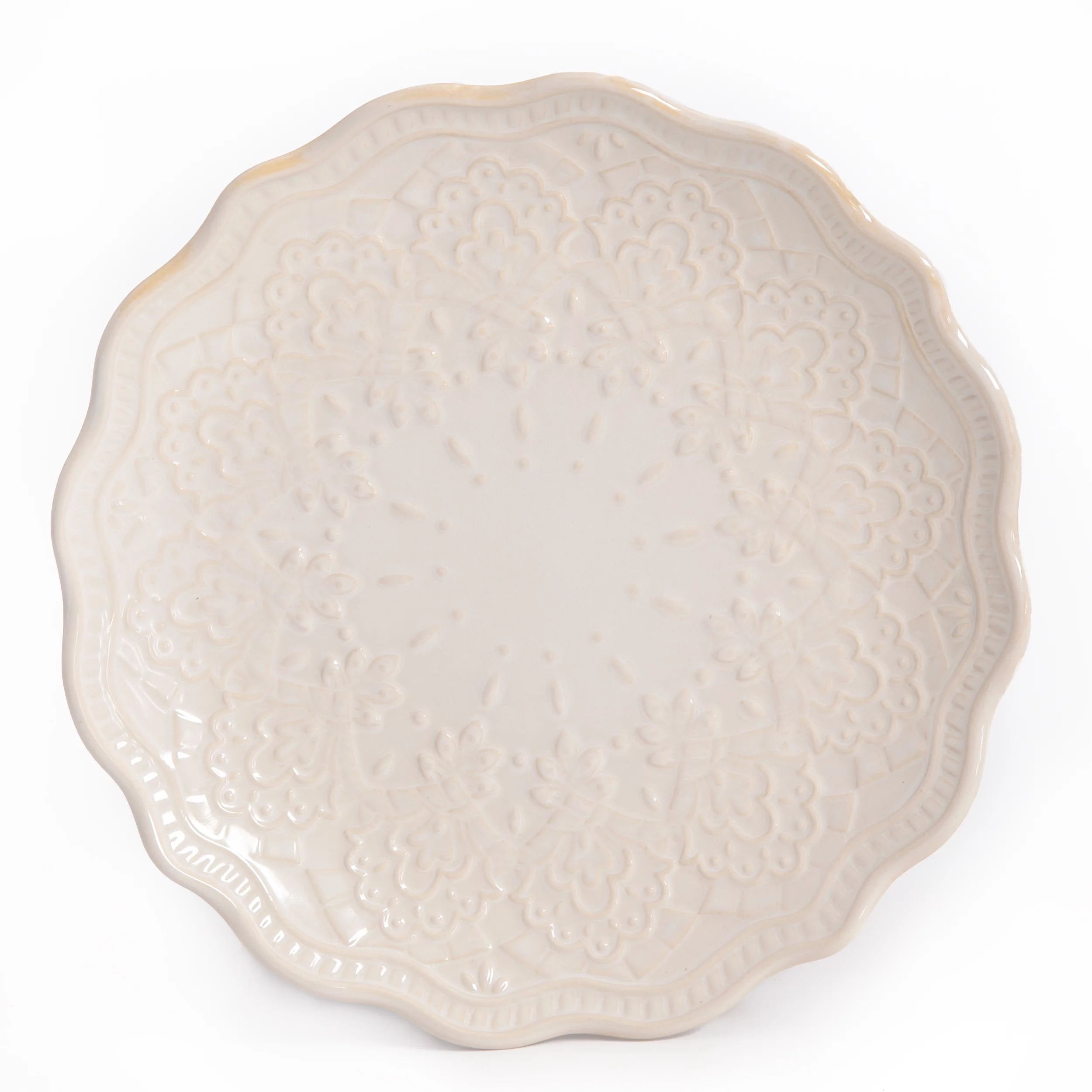 The Pioneer Woman Farmhouse Lace 12-Piece Dinnerware Set, Linen
