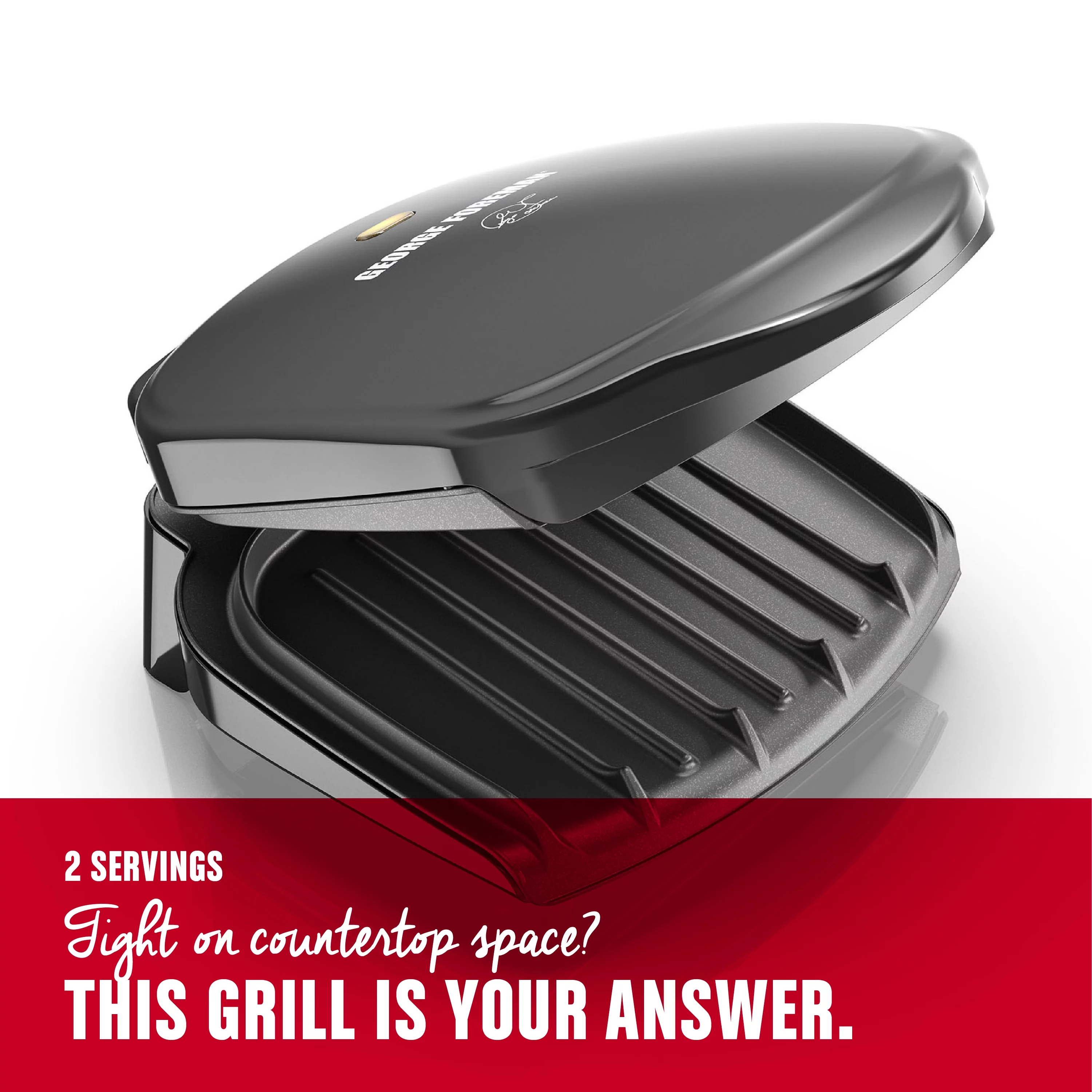 George Foreman 2-Serving Classic Plate Electric Indoor Grill and Panini Press, Black, GR10B