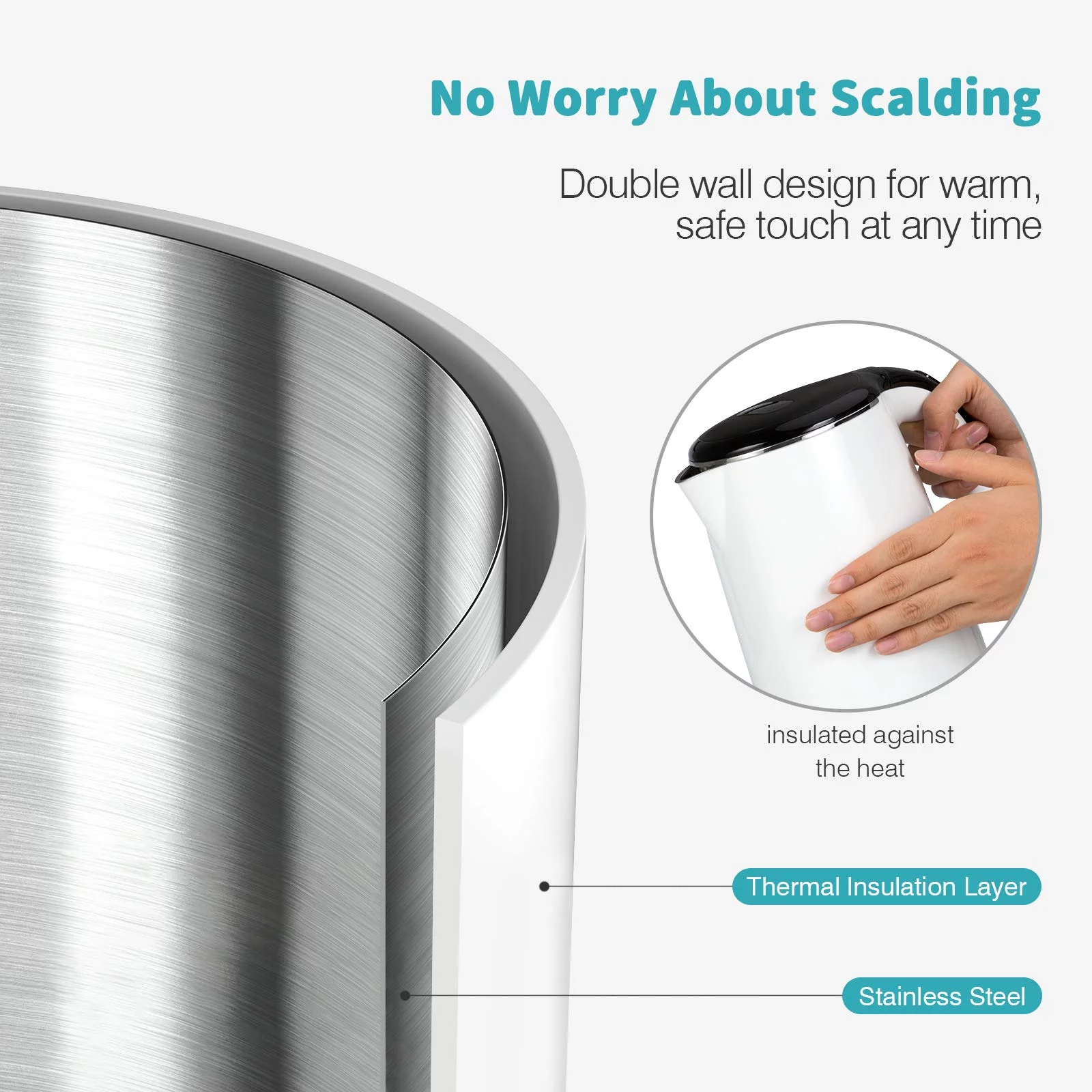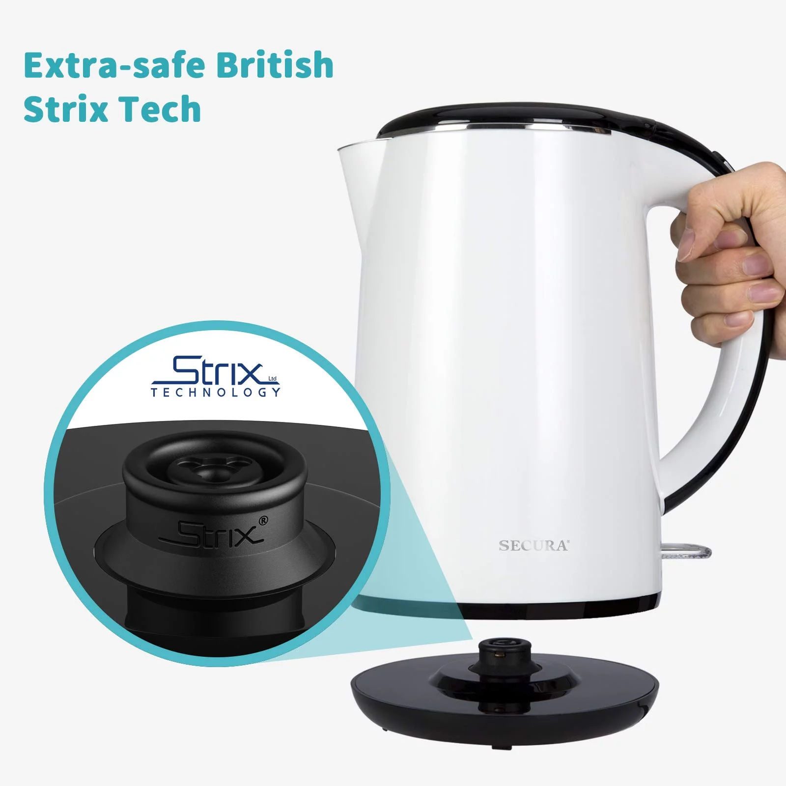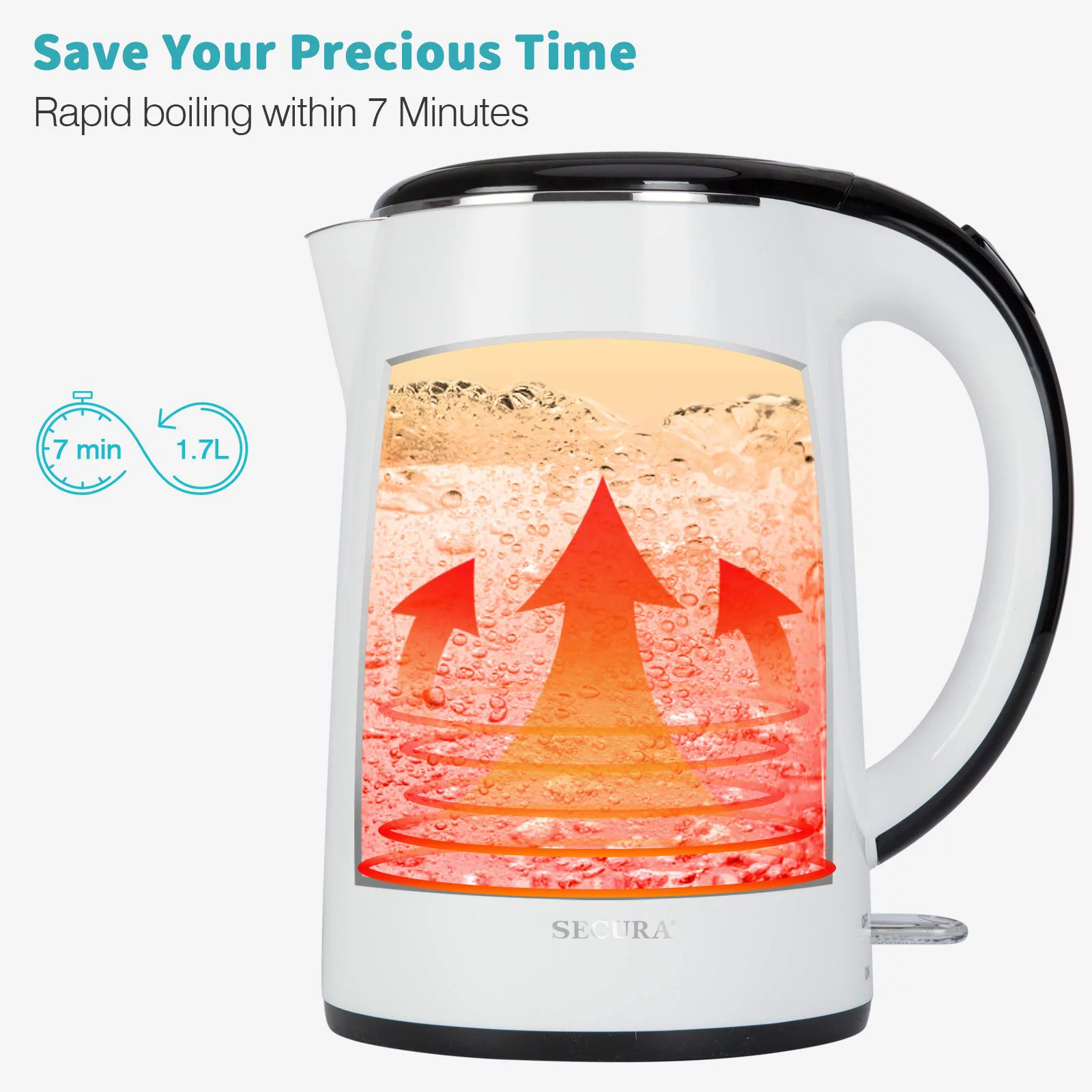 Secura SWK-1701DB The Original Stainless Steel Double Wall Electric Water Kettle 1.8 Quart, White