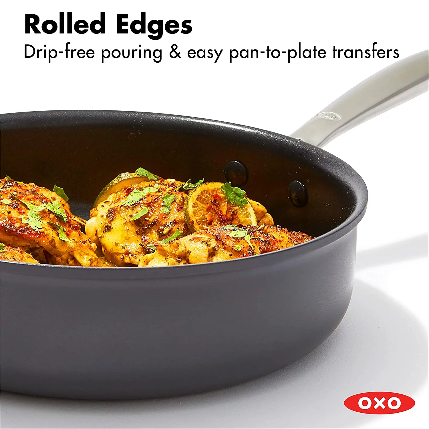Good Grips 10 Piece Cookware Pots and Pans Set 3-Layered German Engineered Nonstick Coating Stainless Steel Handle with Nonslip Silicone Gray