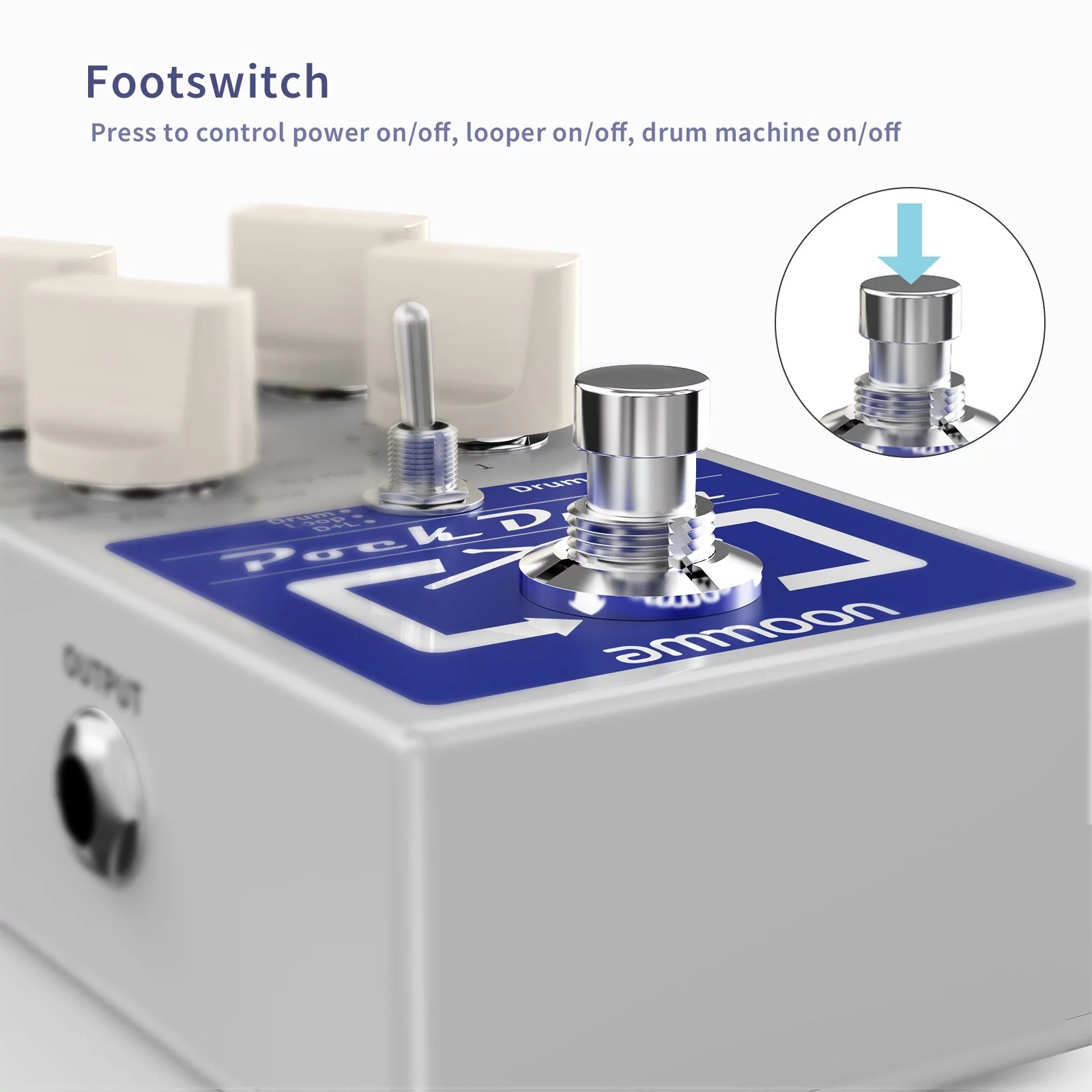 Andoer PockDrum Drum & Loop Guitar Effect Pedal 3 Modes 11 Drum Styles 11 Rhythm Types Built-in Looper Max. 20min Recording Unlimited Dub Tracks Tap Tempo