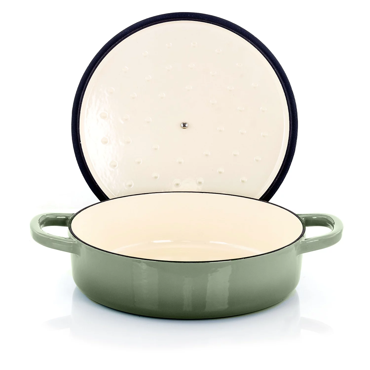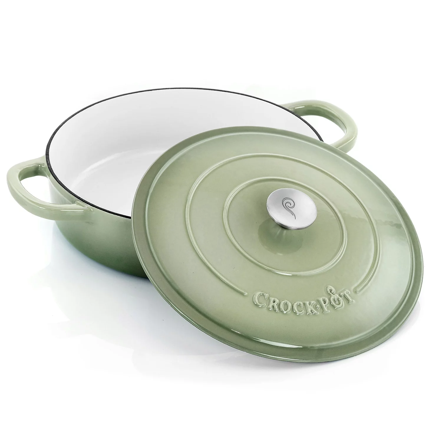 Crock Pot Artisan 5 Quart Round Enameled Cast Iron Braiser Pan with Self Basting Lid in Pistachio Green