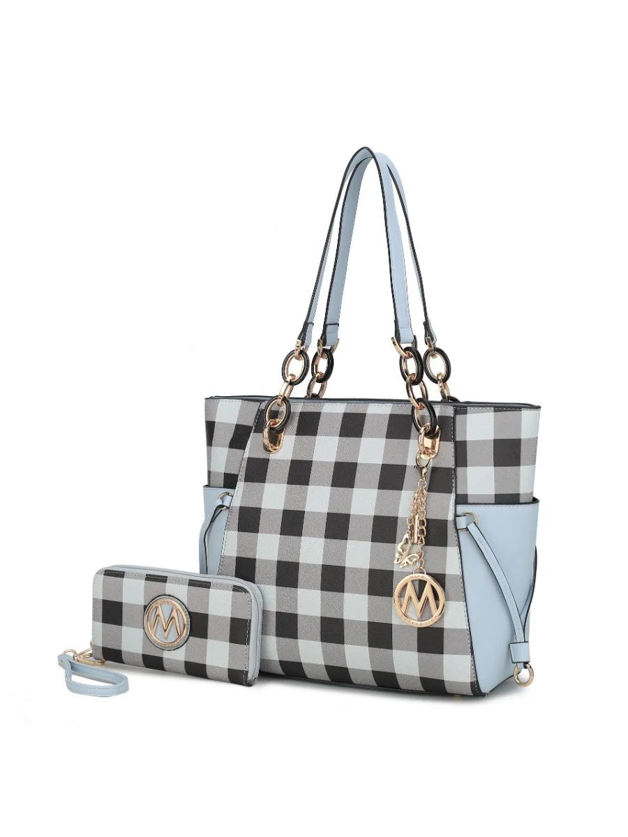 MKF Collection Yale Checkered Tote Handbag with Wallet by Mia K.