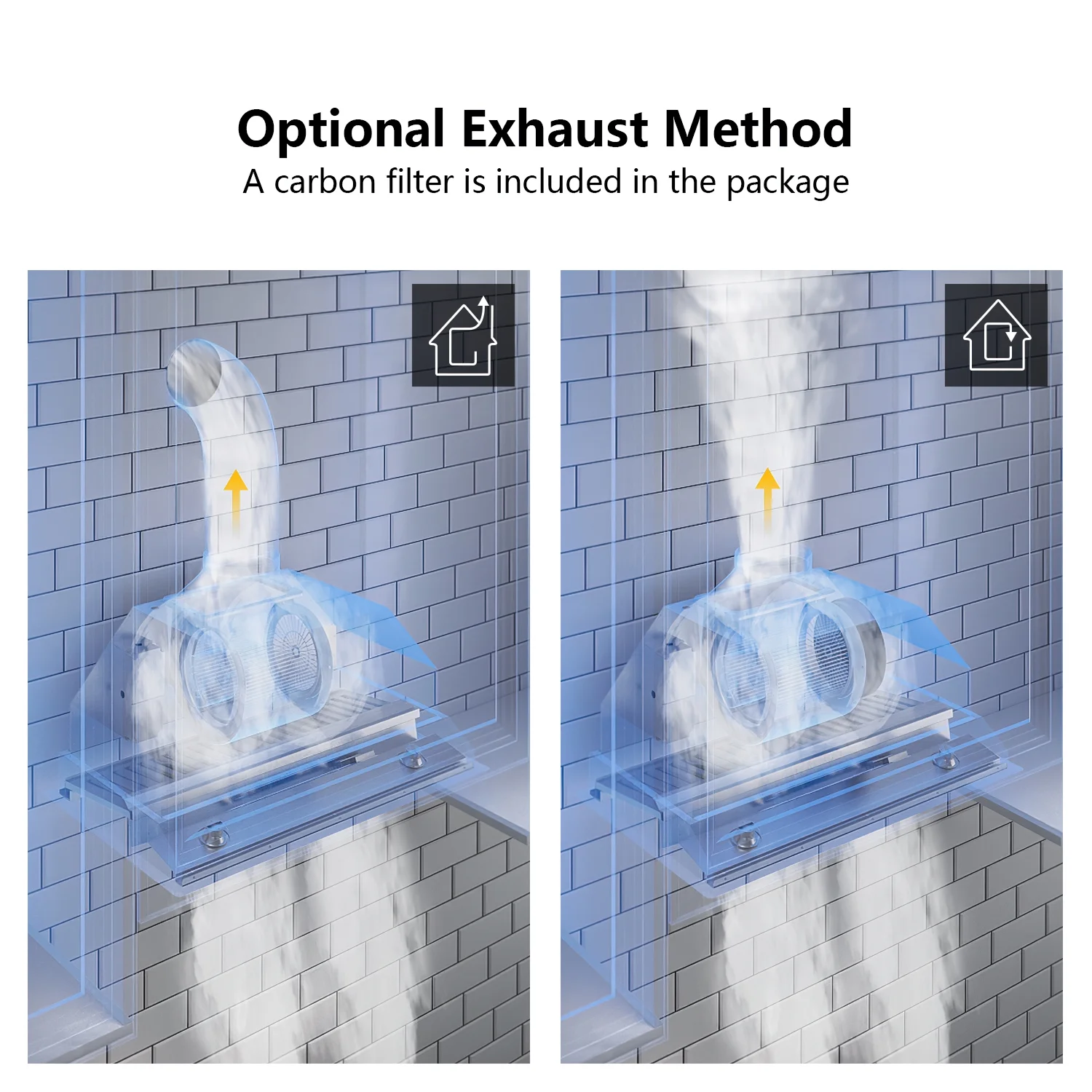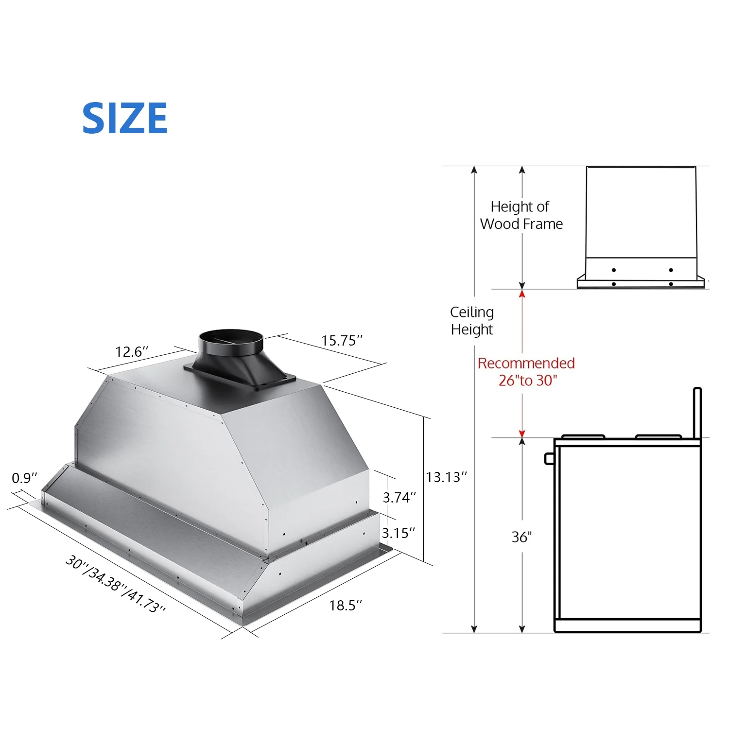 IKTCH 36 inch Built-in/Insert Range Hoods 900 CFM, Ducted/Ductless Convertible Duct, Stainless Steel Kitchen Vent Hood with 2 Pcs Adjustable Lights and 2 Pcs Baffle Filters with Handlebar