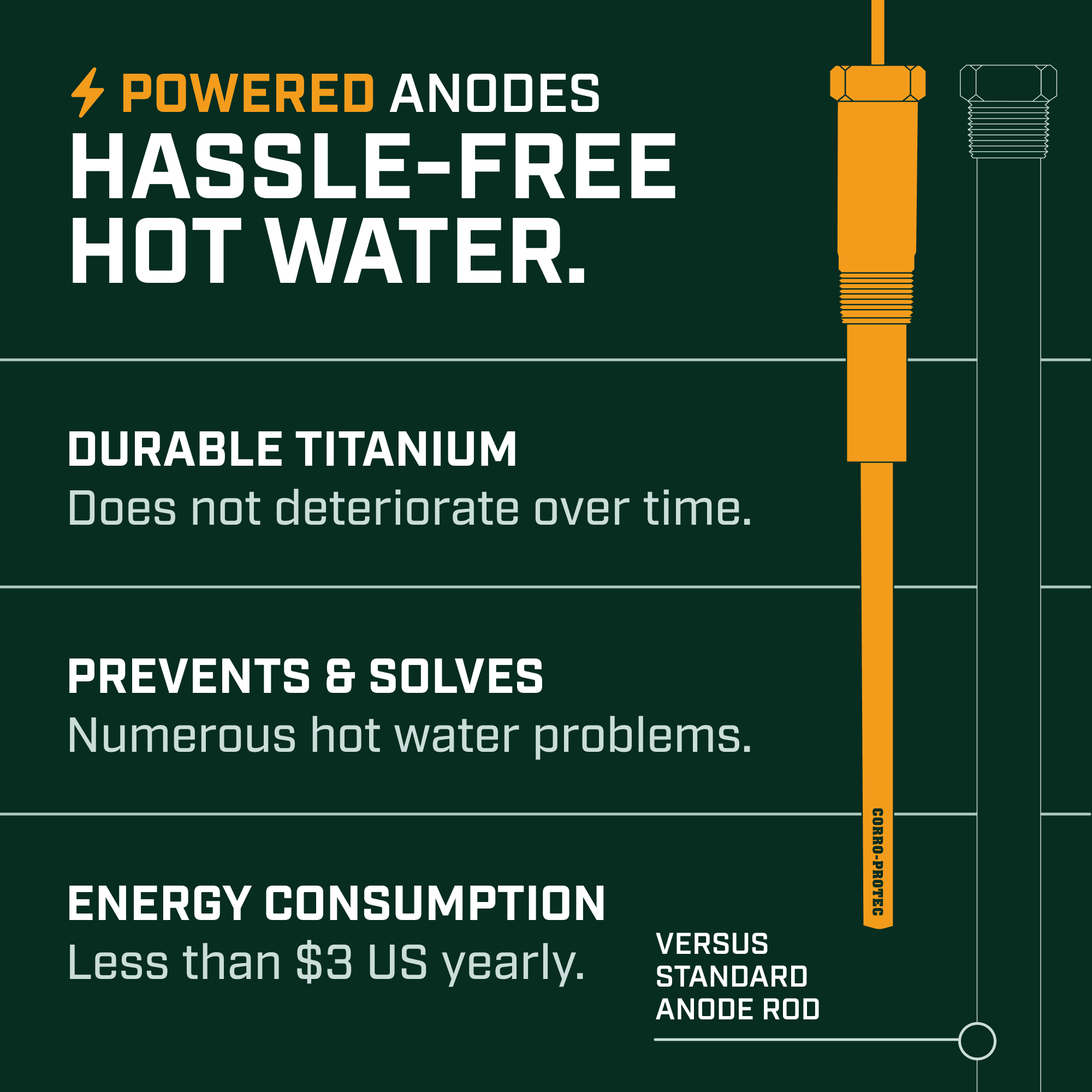Corro-Protec Powered Anode Rod for Water Heater, Stops Odors and Corrosion, 20-Year Warranty