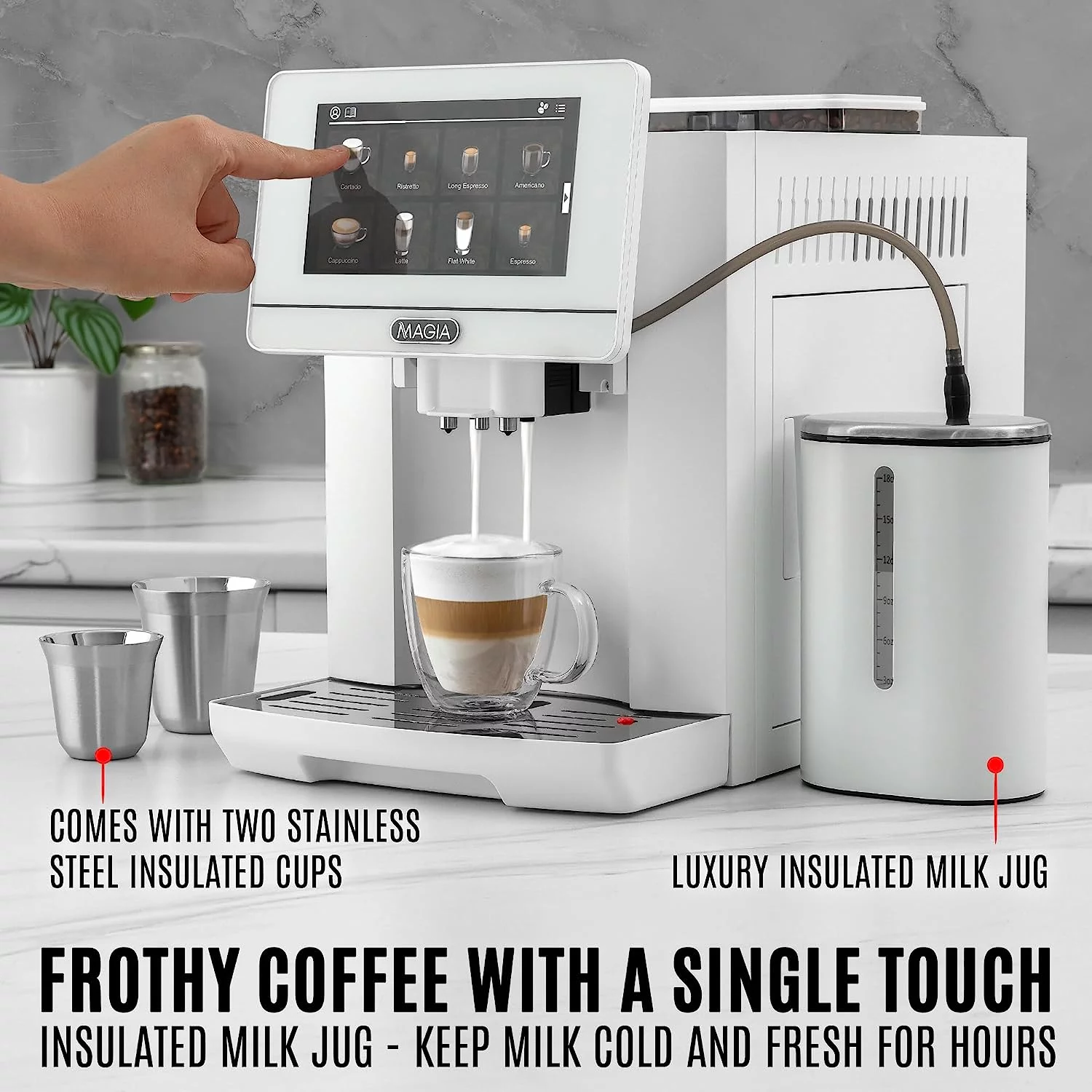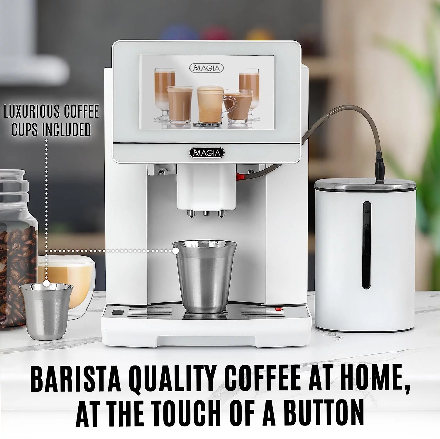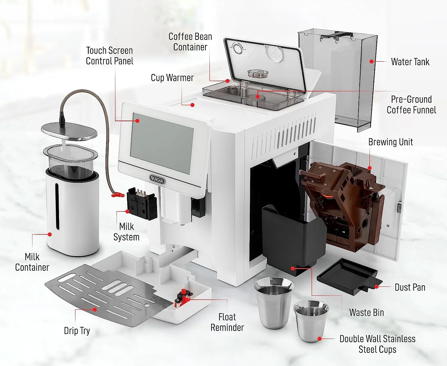 Zulay Kitchen Super Automatic Coffee Espresso Machine with Grinder and Milk Frother - Espresso Coffee Maker - White Magia
