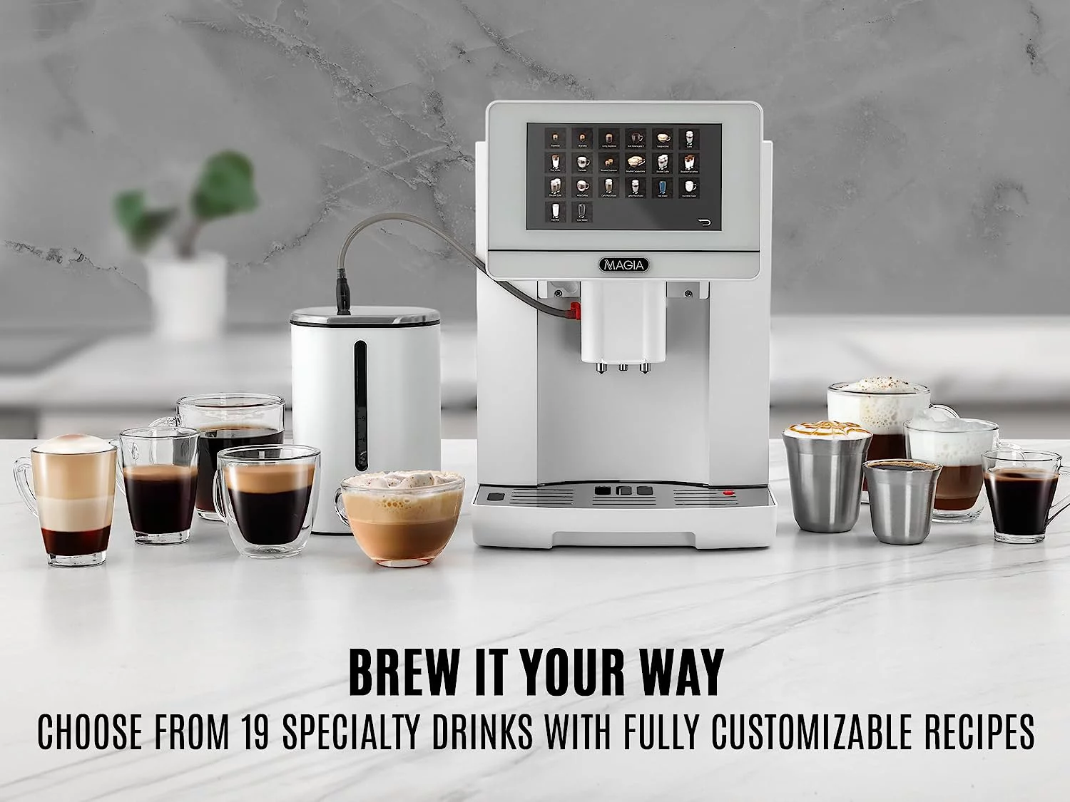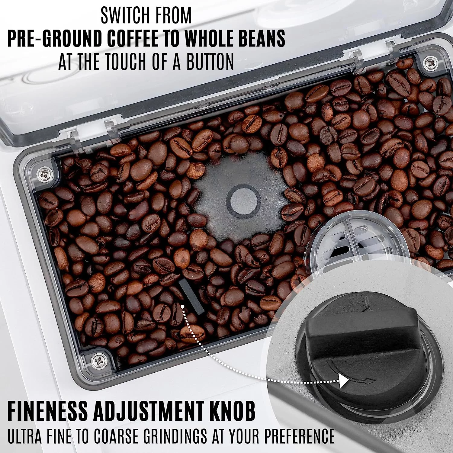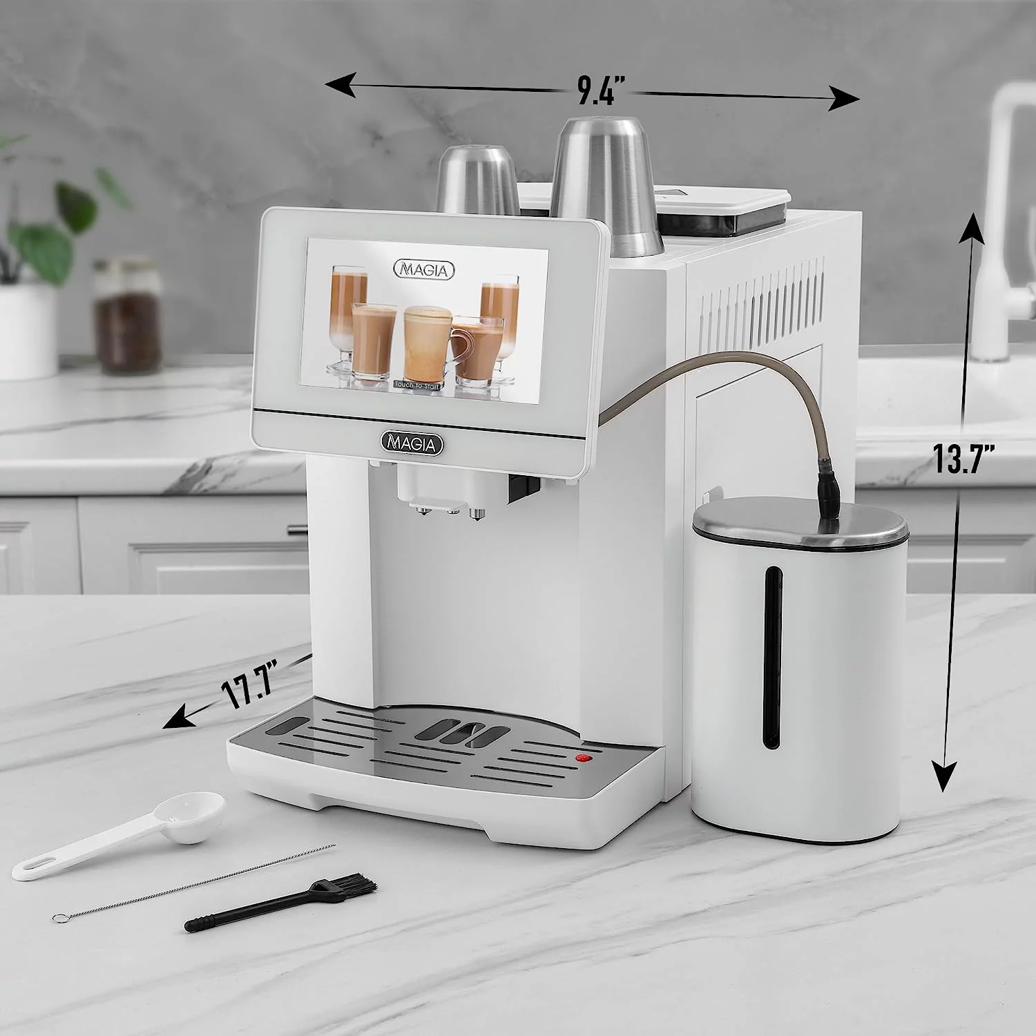 Zulay Kitchen Super Automatic Coffee Espresso Machine with Grinder and Milk Frother - Espresso Coffee Maker - White Magia