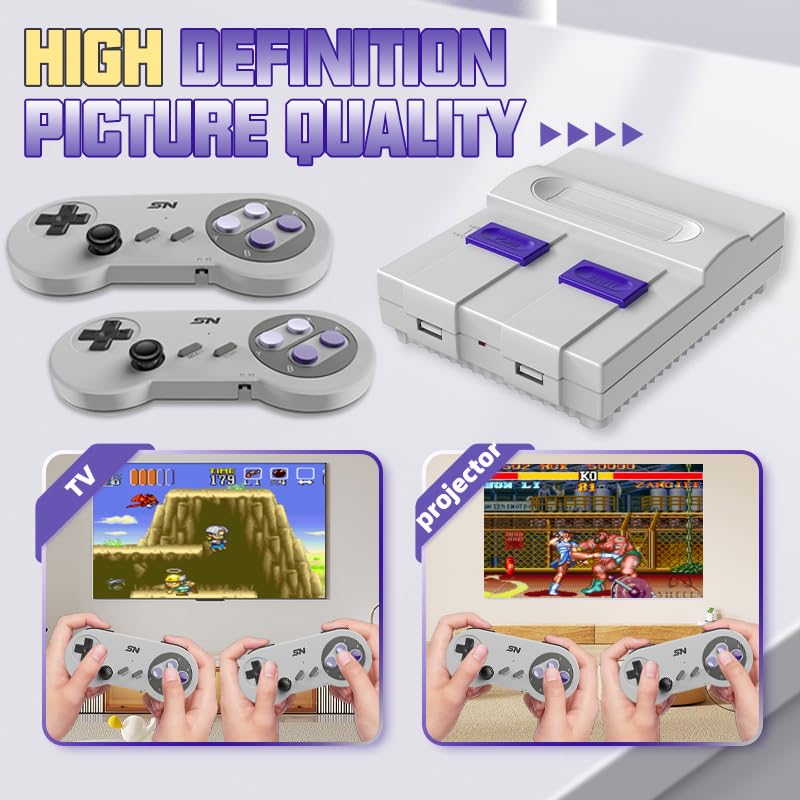 Retro Video Game Console 16Bit Super Game Machine Built in 5000 Classic Games Support HDMI Out 4K TV Gaming Console with 2.4G Wireless Controllers Gift
