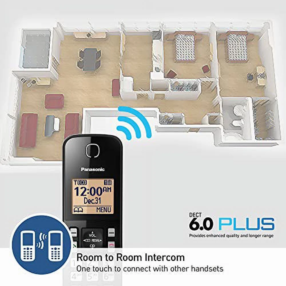Panasonic Expandable Cordless Phone System with Amber Backlit Display – 2 Handsets – KX-TGC352B (Black)