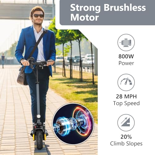 Electric Scooter Adults, 800W Motor & 28 MPH Portable Folding Commuting Eletric Scooter, Up to 22 Miles Range, 10" Off Road Tires e Scooter, Dual Brake & Dual Suspension Scooter for Adult E-Scooter