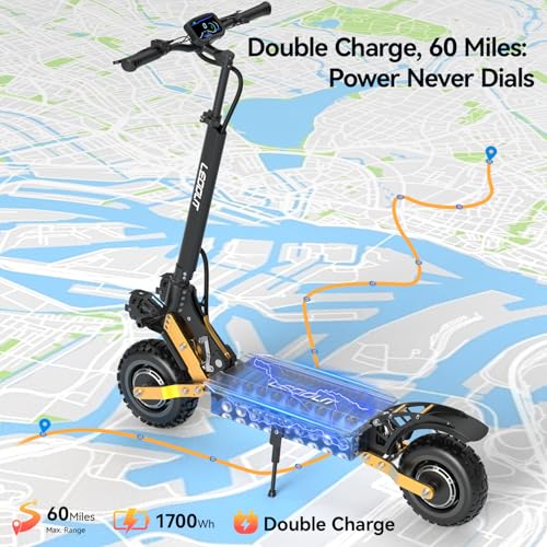 Electric Scooter, 31/53Mph Top Speed, 1000W/5600W Motor, 40/59Mi Long Range, NFC Dashboard, Dual Suspension & Brake System Electric Scooter for Adults