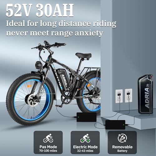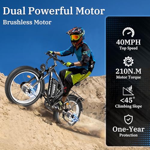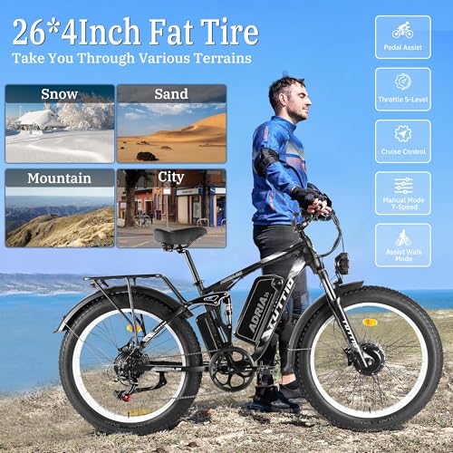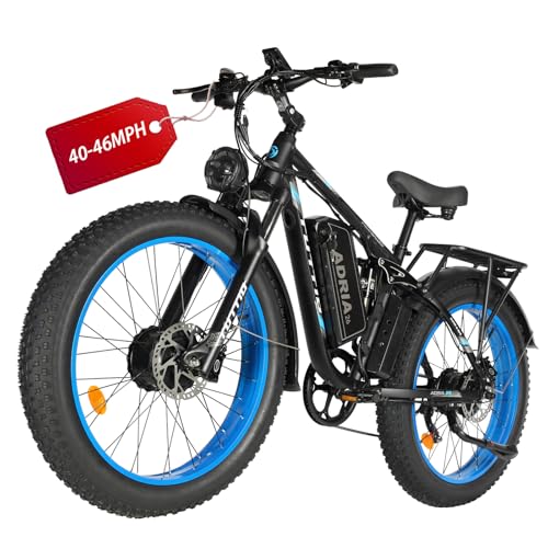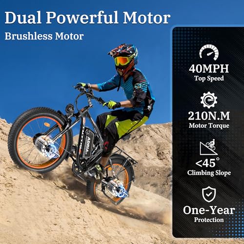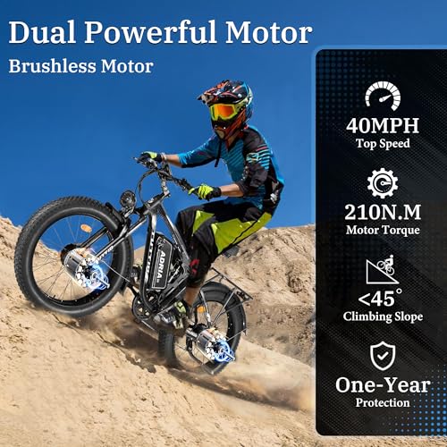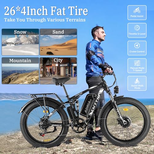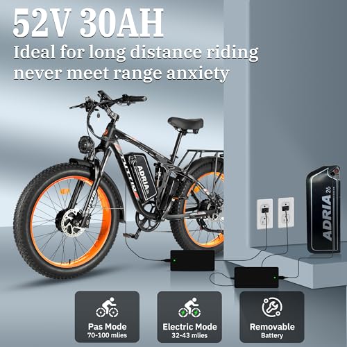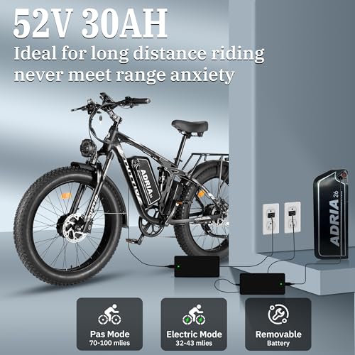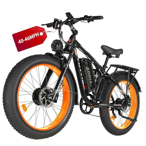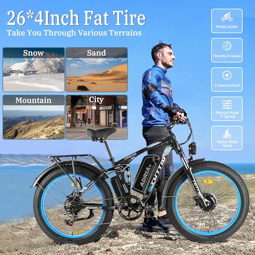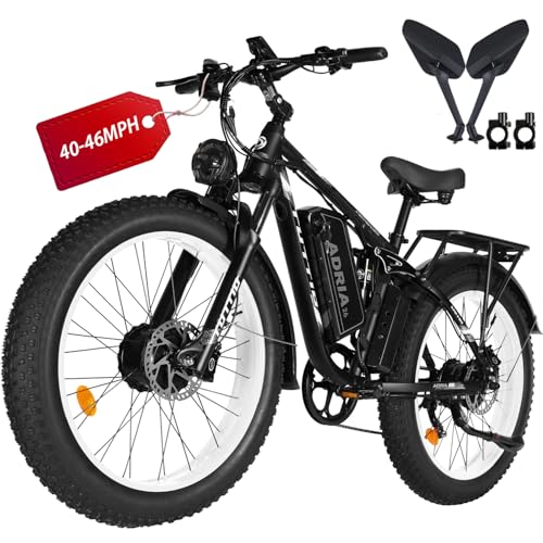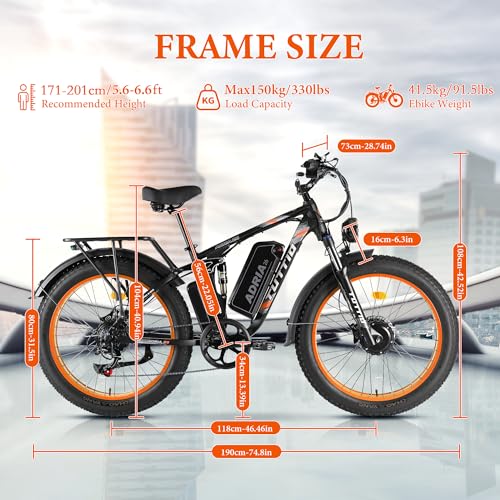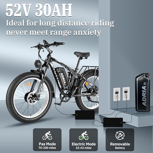 Tuttio-Adria26 Dual-Motor Electric-Bike for Adults - 40-46MPH Fast-Ebike, 52V 30AH Long-Range-Electric-Bicycle, Full Suspension Ebikes, 26 Inch Fat Tire Dirtbike for Mountain Snow Hunting Commuting