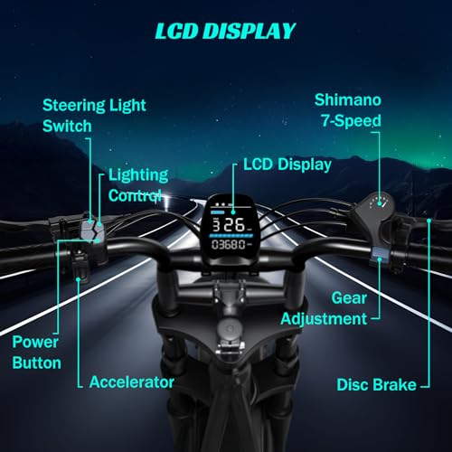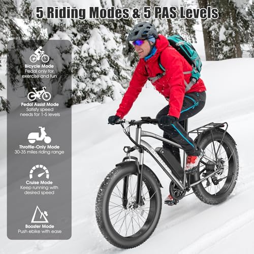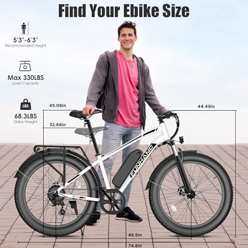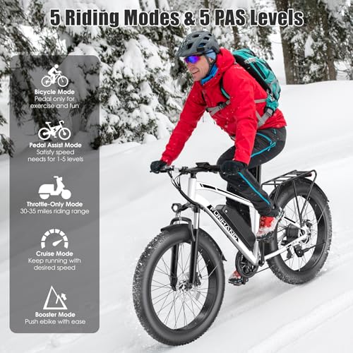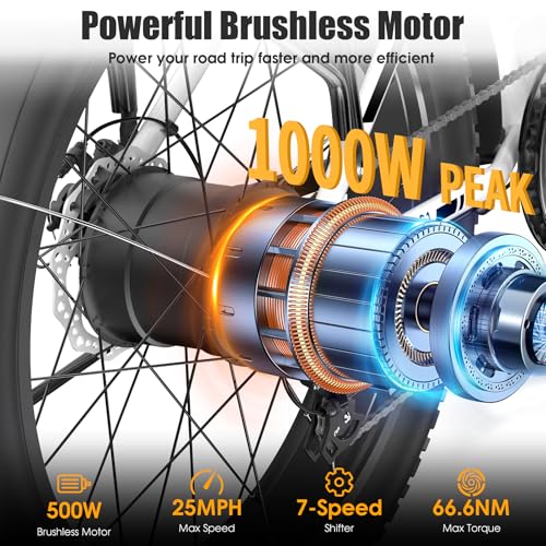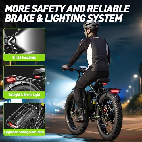 Electric Bike for Adults, Peak 1000W Ebike, 25MPH 60Miles Electric Mountain Bike, 26" Fat Tire Adult Electric Bicycle with 48V 13AH Battery, Rear Rack, 7 Speed, Front Suspension, Turn Signal
