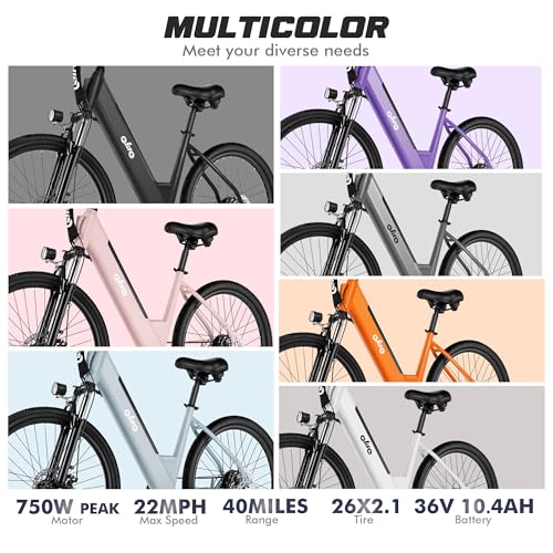 Cityone Electric Bike for Adults 26" Step-Through 22MPH Ebike with 2.1" Tire,UL2849 Certified Built-in Removable Battery,Peak 750W Motor Ebikes with 7 Speed, Commuter E Bicycle