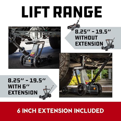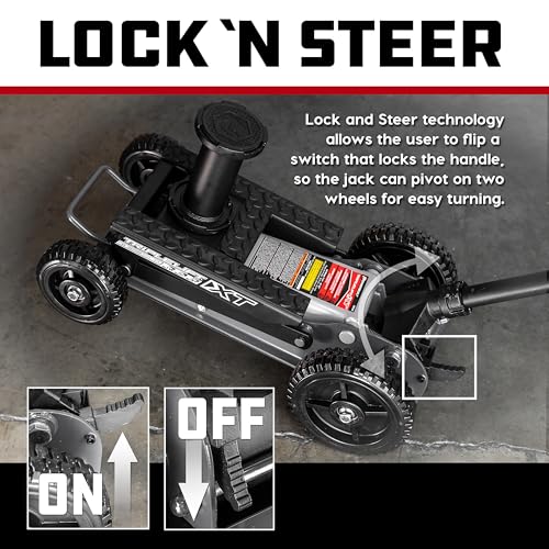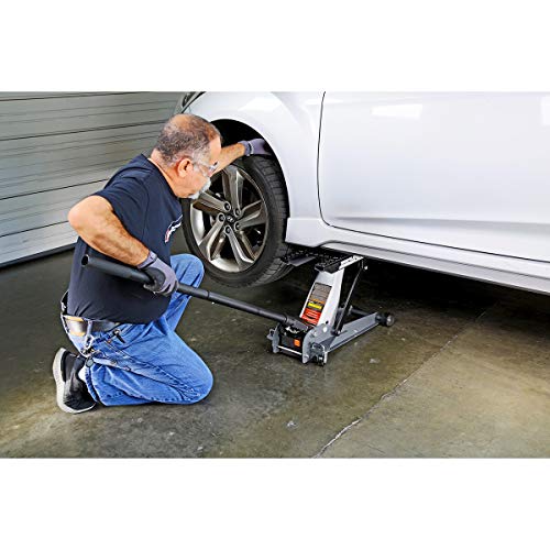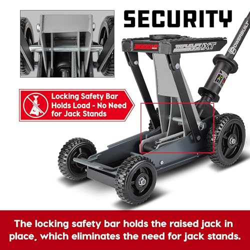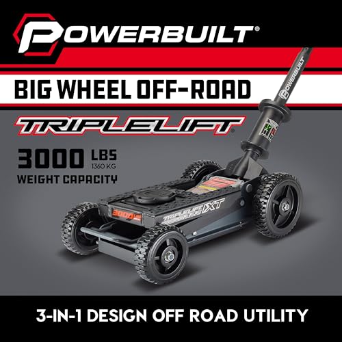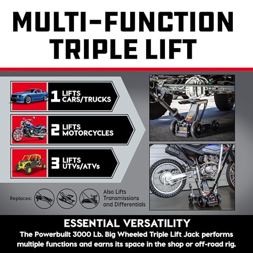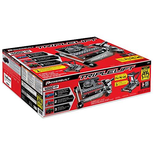 Powerbuilt 2 Ton Triple Lift Floor Jack, Lifts Cars, Trucks, Motorcycles, ATV's, Transmissions, Tie-Down Loops, Locking Safety Bar - 620422E, Silver