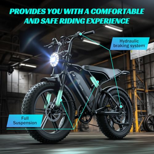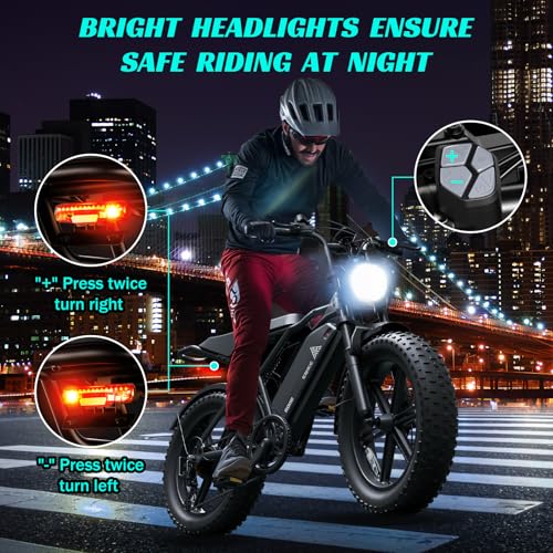 TST Electric Bike for Adults 1500W Peak 20" Fat Tire All-Terrain E-Bike 60/110 Miles 28MPH Electric Dirt Bike for Road Sand Mountain Snow - 48V 15/25AH Battery Powered Electric Motorcycle