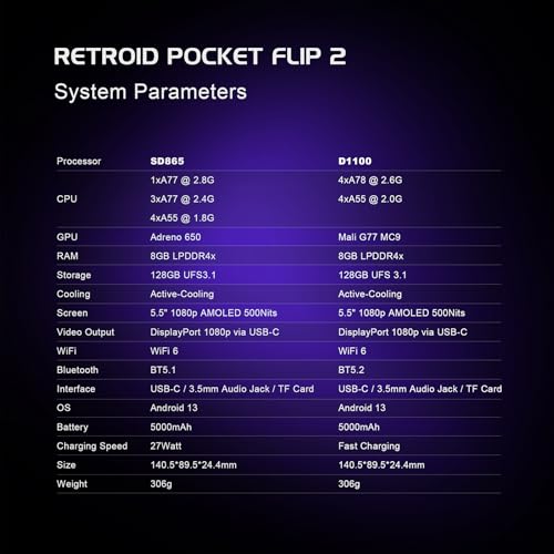 Retroid Pocket Flip 2 Retro Game Console, 5.5" AMOLED 1080P Display, Hall Effect Sticks, 5000mAh Battery, Portable Android Handheld (Black)