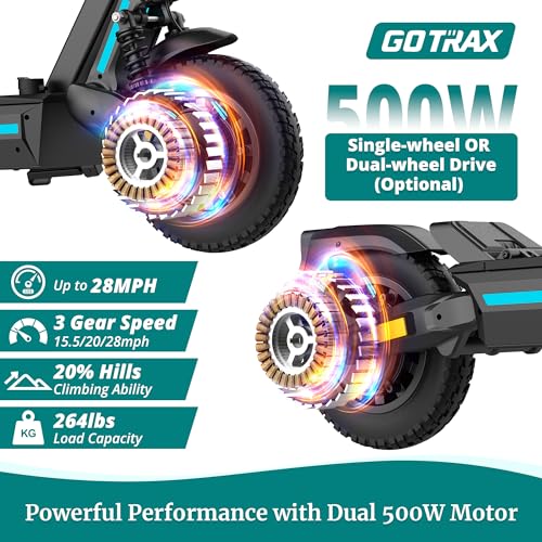Gotrax Ares Off-Road Electric Scooter for Adults, 10" Tubeless Tires, 25 Miles Range by Dual 500W Motor, 28Mph Top Speed, Dual Suspension & Quick-Release Battery, UL 2272 Certified, Foldable E-Scooter