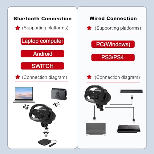 DOYO PS4 Steering Wheel and Pedals - Gaming Steering Wheel for PC, PS4, Switch, PS3, iOS & Android Mobile Phones, Pro Racing Wheel with Dual-Vibration Motors, Wireless Bluetooth Connectivity