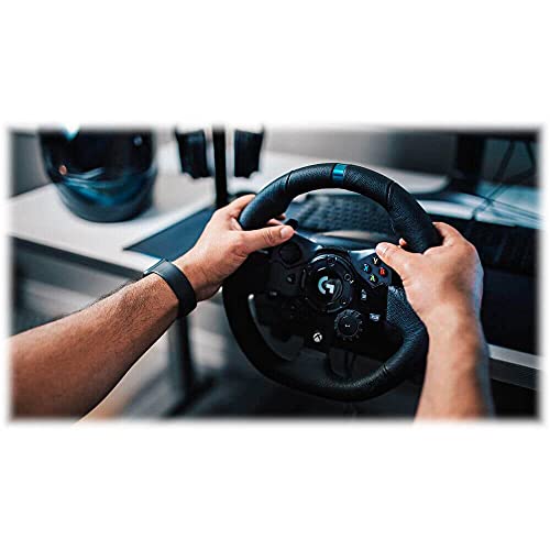 Logitech G923 Racing Wheel and Pedals, TRUEFORCE up to 1000 Hz Force Feedback, Gaming Steering Wheel PS5, PS4, PC, Mac, Genuine Leather- Black