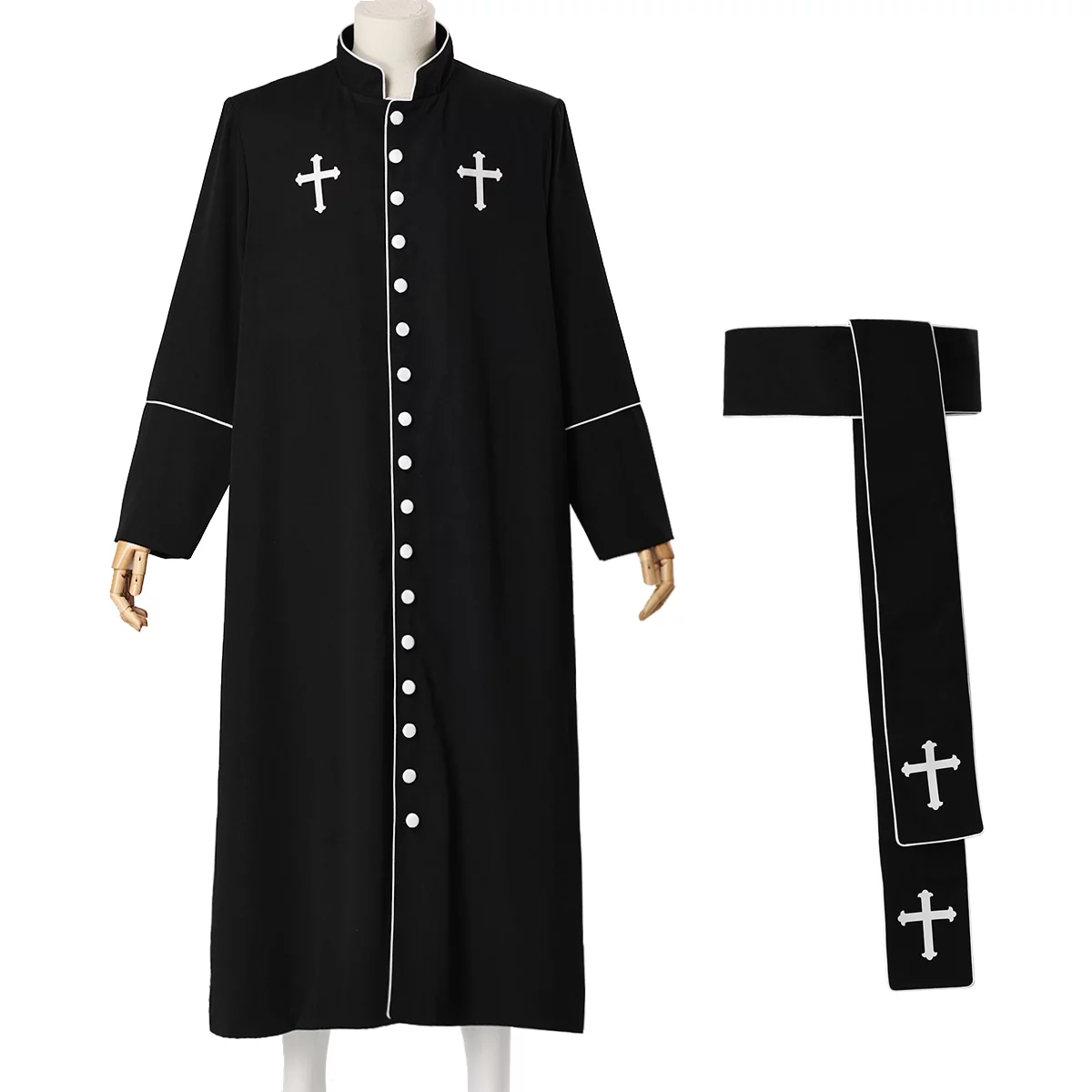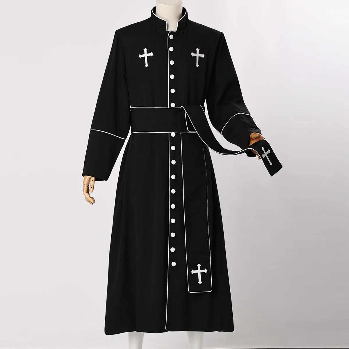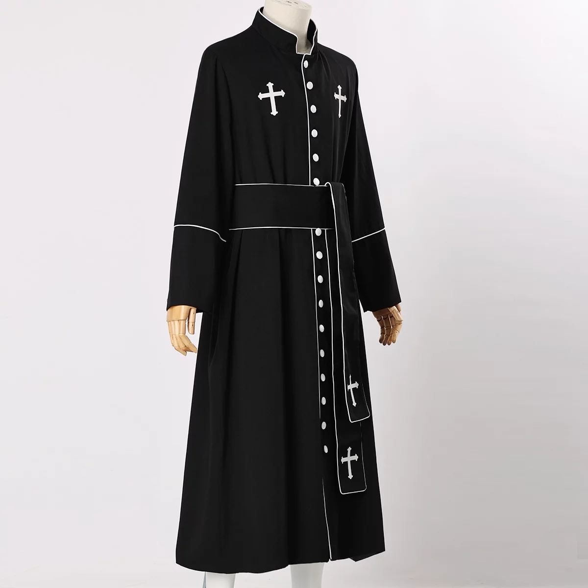 Mens Priest Cassock Pastor Robe Church Robe Clergy Roman Cassock Belt