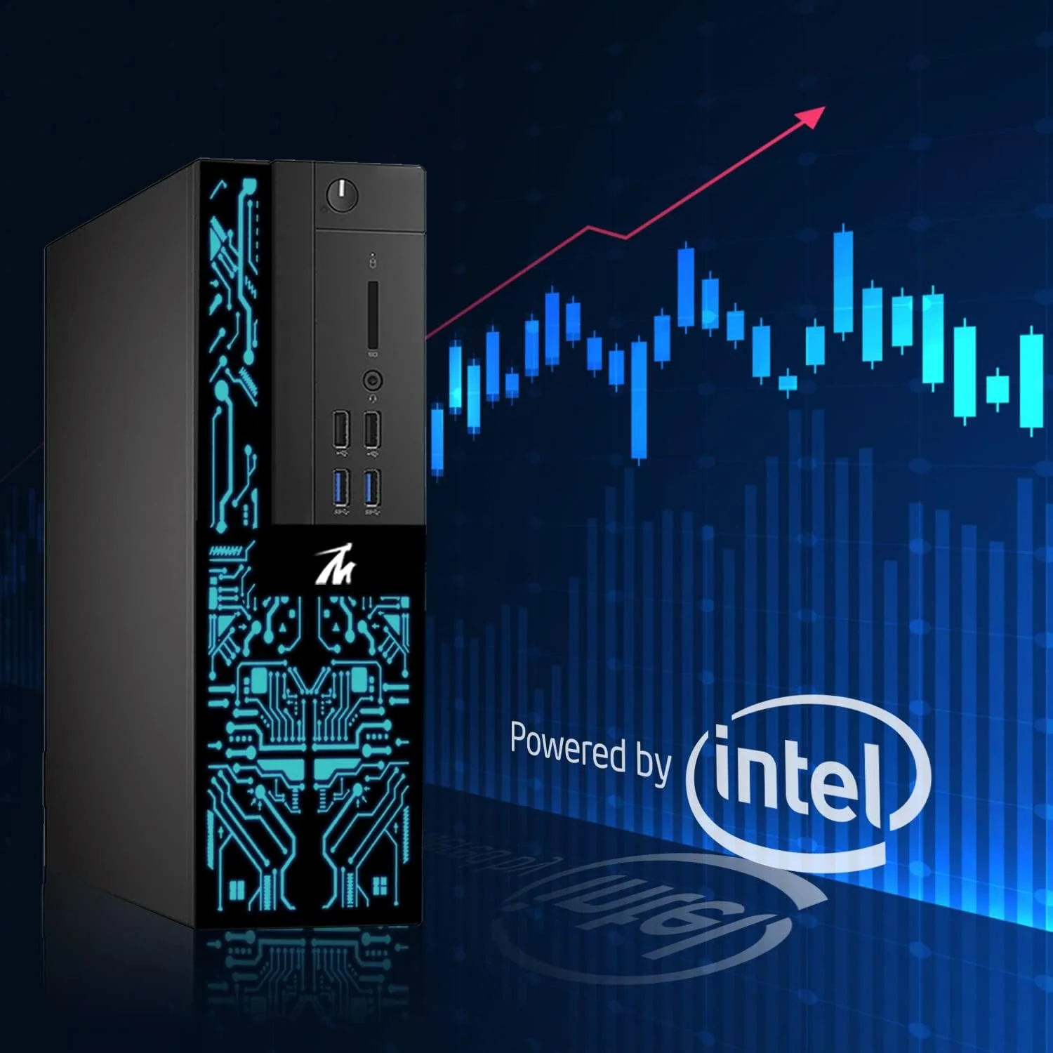 Restored Trading Desktop PC TechMagnet Siwa 6 Intel Core i5-6500, 16GB RAM, 120GB SSD, 2TB HDD, 4 New 27” LED Monitors, 2 Network Cards, Trading Platform Support, MTG Keyboard & Mouse Win 10 Pro (Refurbished)