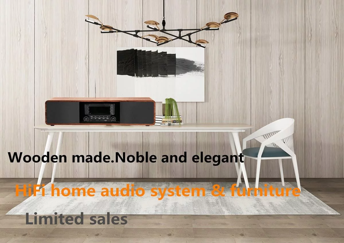 Open Box KEiiD CD Player for Home with Bluetooth Stereo System Wooden Desktop Speakers FM USB 20 lb
