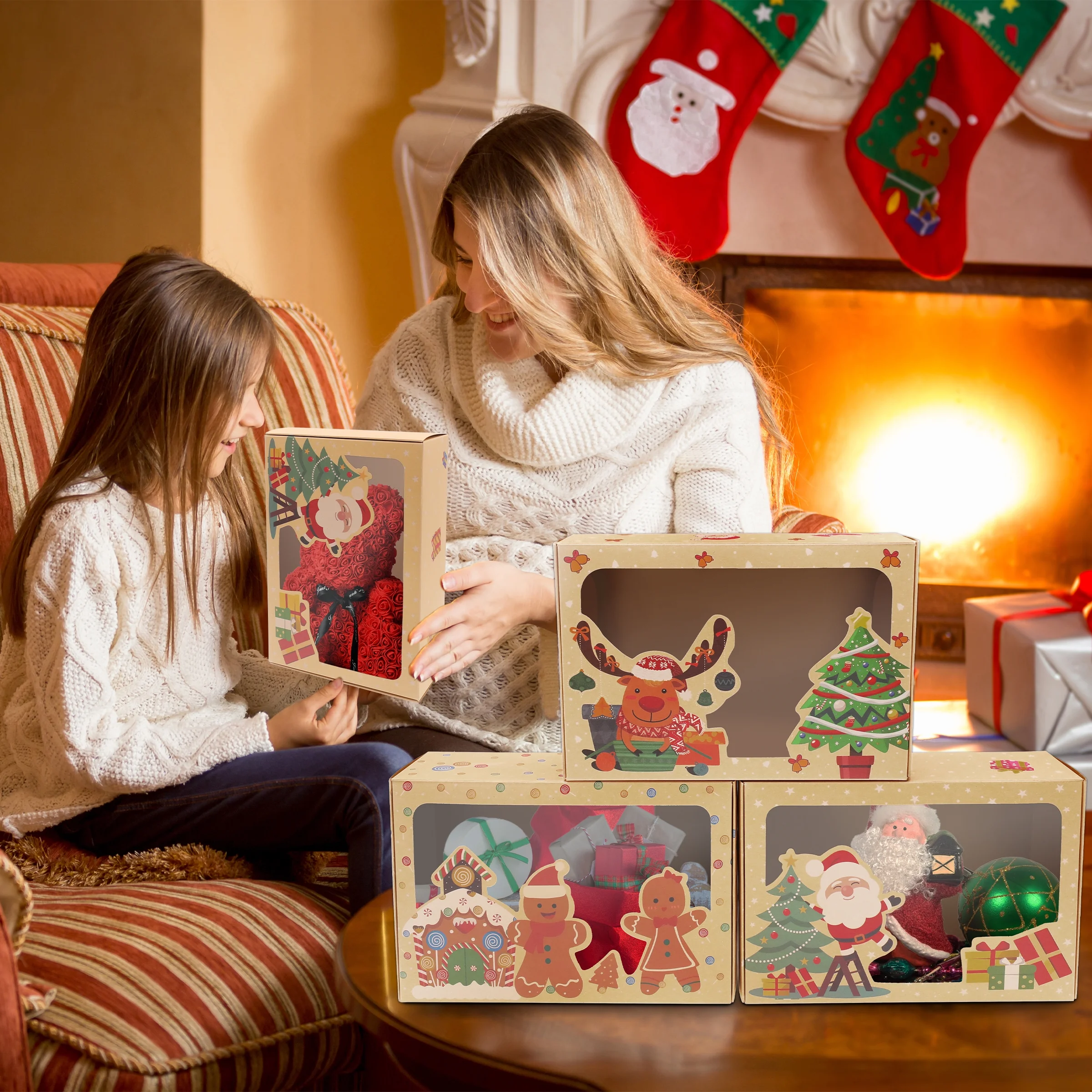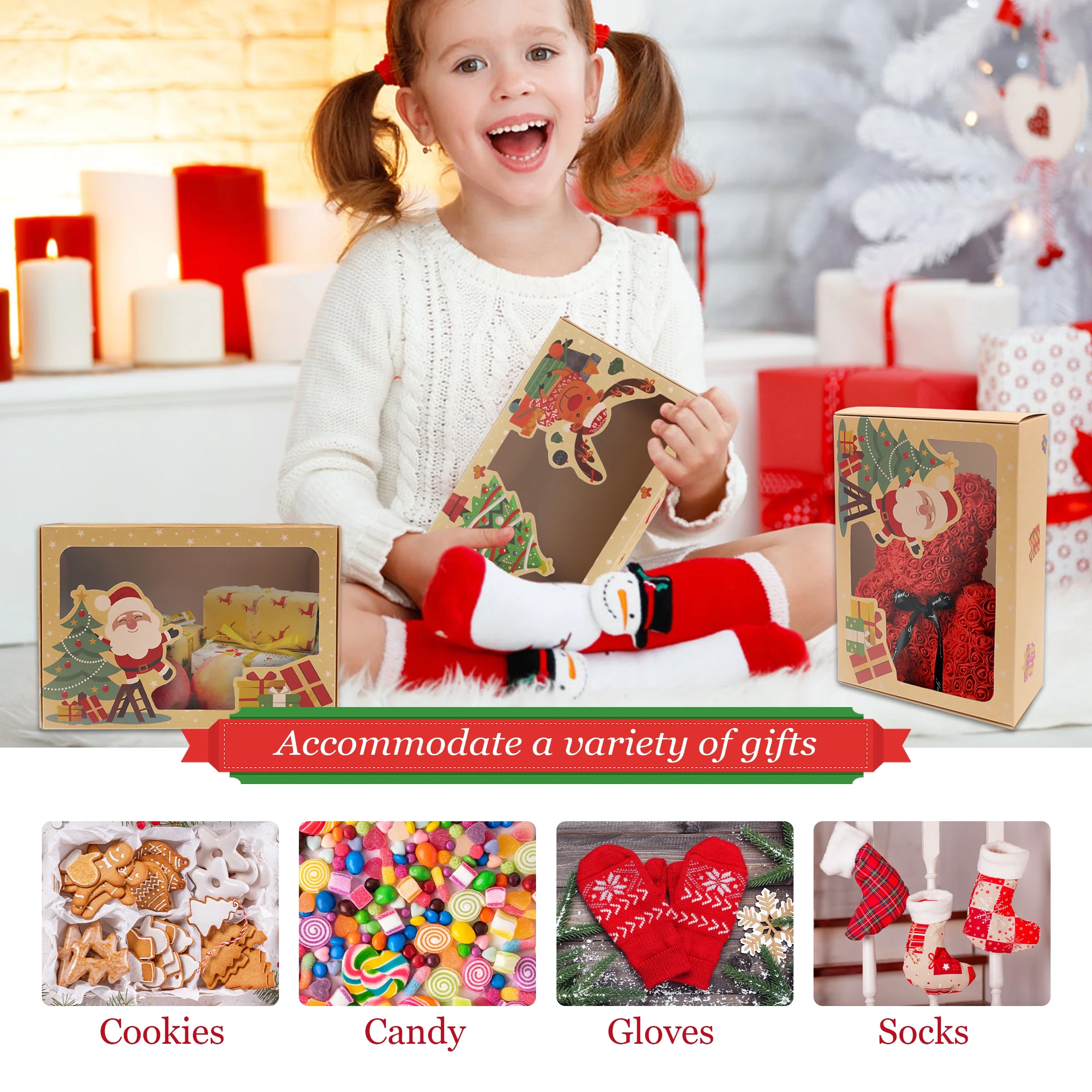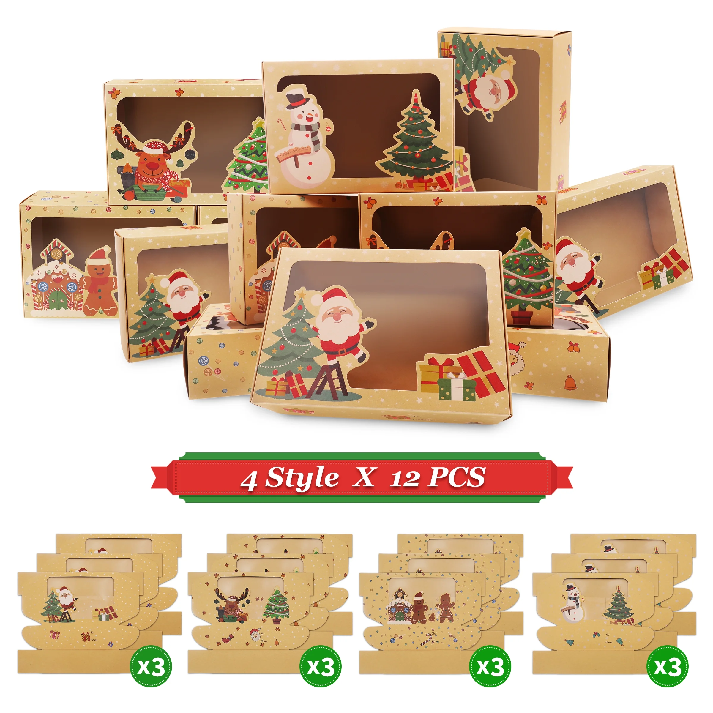 ASENEK 12 Pack Christmas Cookie Boxes with Window for Gift Giving, Holiday Bakery Treat Boxes Gift Baking Box, Christmas Kraft Gift Boxes and DIY Gift Tags, Pastry, Candy, Party Favors