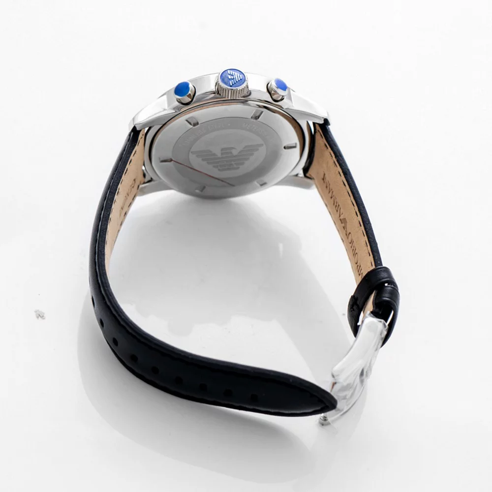 Emporio Armani Men's Emporio AR0431 Armani Gents Stainless Steel Chronograph Watch with Black Leather Strap