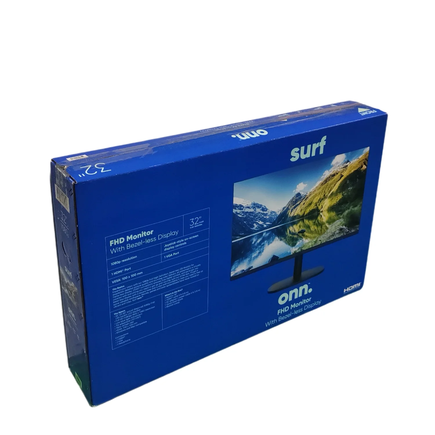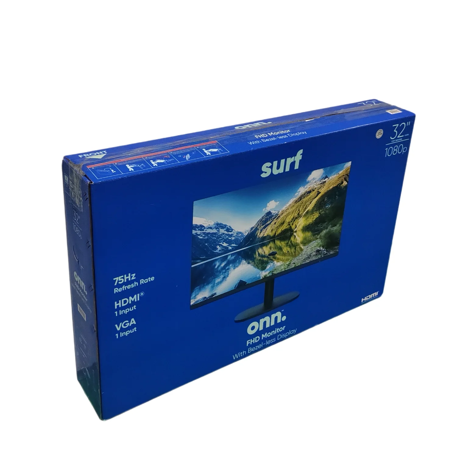 onn. 32" FHD (1920 x 1080p) 75hz Bezel-Less Office Monitor with 6 ft HDMI Cable, Black